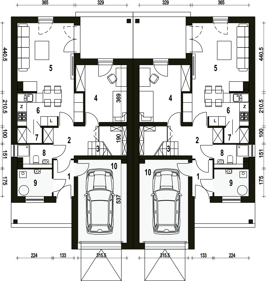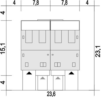 Projekt jest w fazie koncepcji. Przy zakupie projektu należy zapłacić 50% zaliczki. Zaliczka jest bezzwrotna w przypadku zwrotu lub rezygnacji z zamówienia. Budynek dwulokalowy posadowiony na wspólnym fundamencie. Jeśli planujesz budowę na osobnych działkach zamów pojedyncze segmenty: podstawa + lustro.