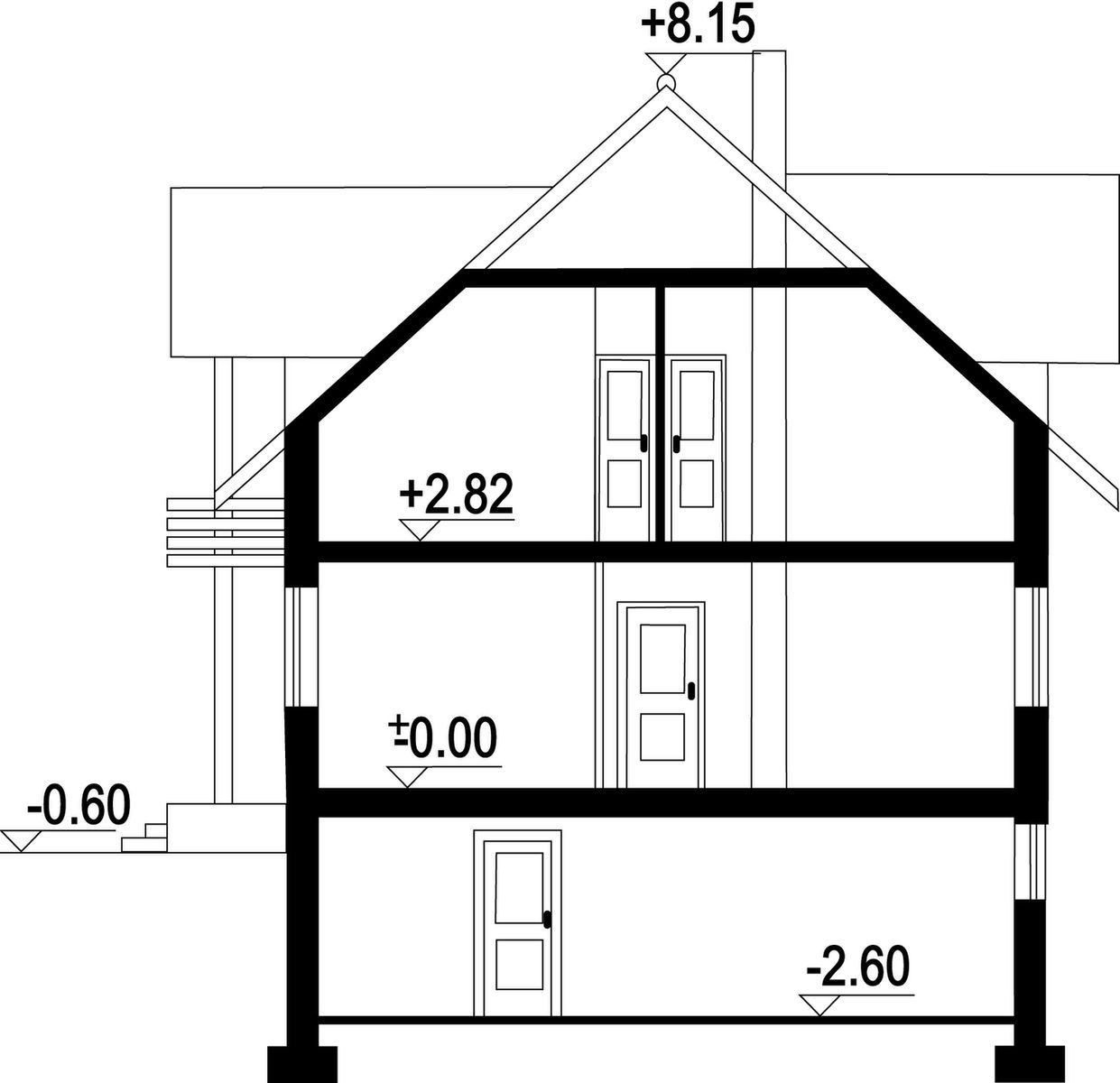 Wysokość ścianki kolankowej: 1.1 m. Ilość drewna na więźbę: 6.13 m³. Strop: płyta żelbetowa. Pokrycie dachu: dachówka ceramiczna. Ściany zewnętrzne: pustaki ceramiczne + styropian. Ściany wewnętrzne: pustaki ceramiczne. Typ ogrzewania: kocioł gazowy lub kocioł na paliwo stałe.