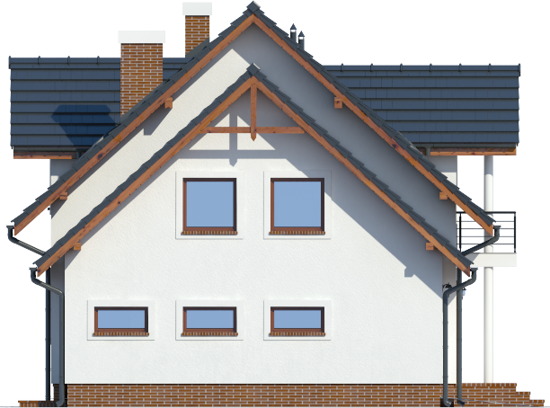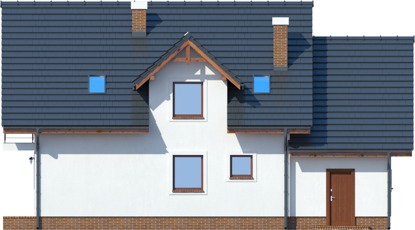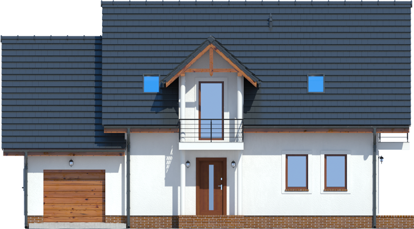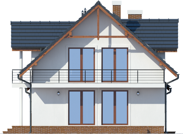 Graficzne opracowanie rzutów poglądowych widocznych na karcie projektu zostało wykonane przez Extradom.pl. Prezentowane przez Extradom.pl wizualizacje wykonane zostały przez autora projektu i należy poczytywać je jedynie za przykład i propozycję wykończenia, wizję architektoniczną autora projektu. Ostateczne wykończenie budynku może nastąpić na wiele sposobów. Szczegółowe rozwiązania zastosowane w oferowanej dokumentacji - w tym również ilość, lokalizacje i wygląd okien, drzwi, kominów - mogą w niewielkim stopniu różnić się od prezentowanej wizualizacji budynku.