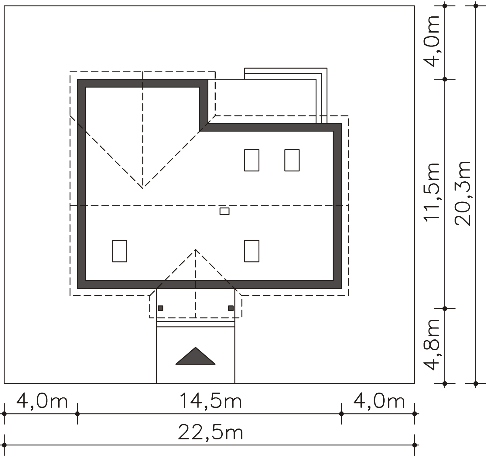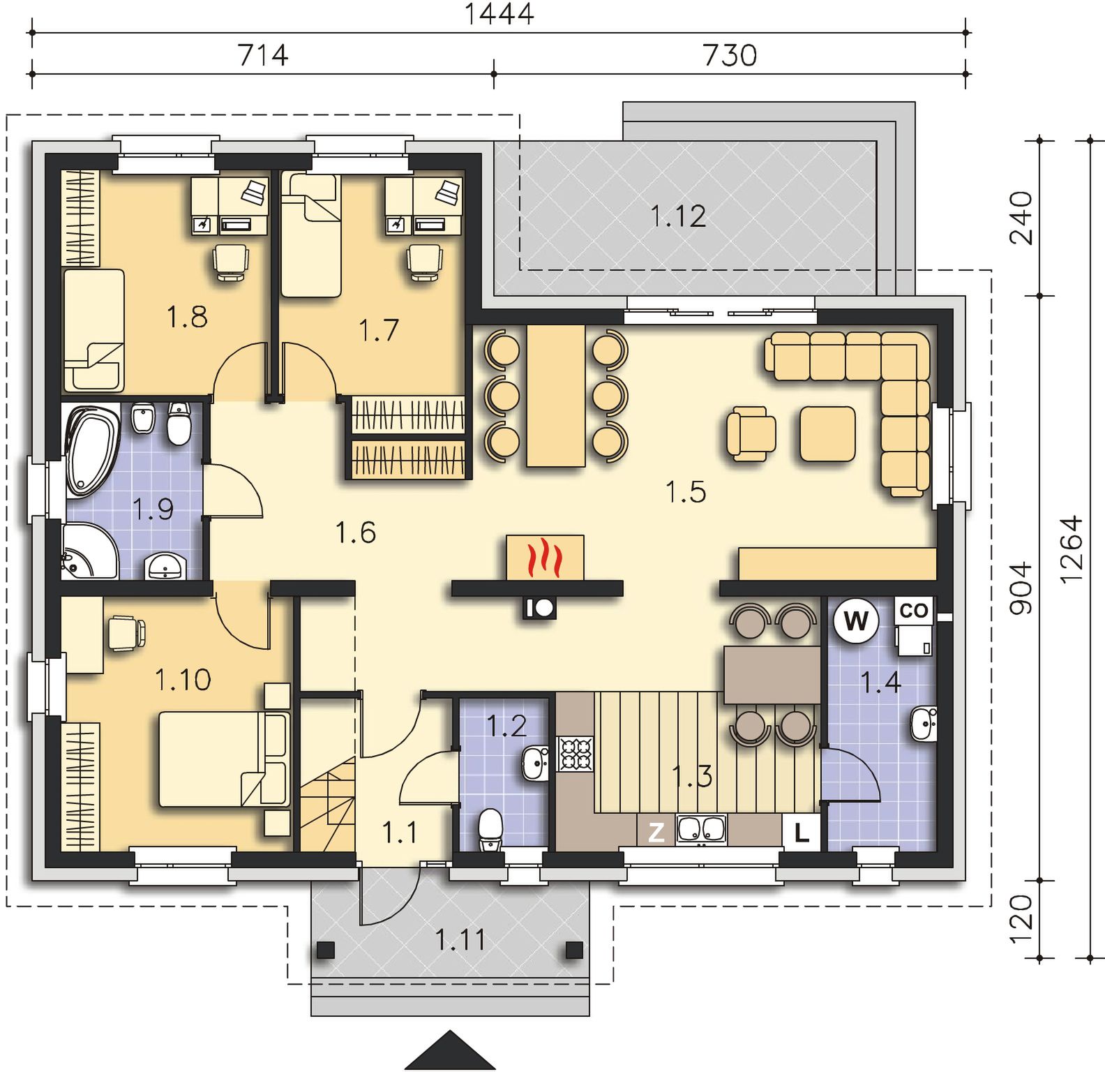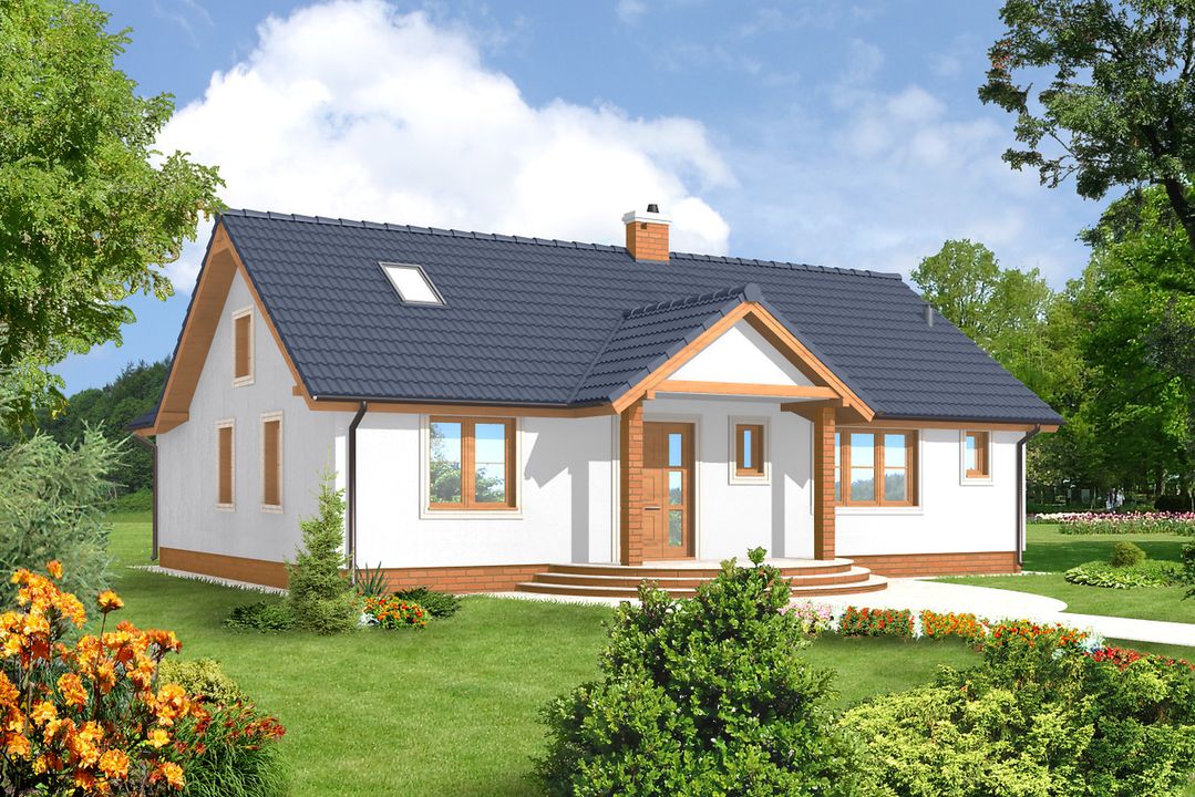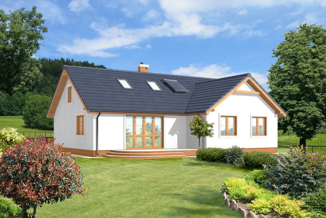 Graficzne opracowanie rzutów poglądowych widocznych na karcie projektu zostało wykonane przez Extradom.pl. Prezentowane przez Extradom.pl wizualizacje wykonane zostały przez autora projektu i należy poczytywać je jedynie za przykład i propozycję wykończenia, wizję architektoniczną autora projektu. Ostateczne wykończenie budynku może nastąpić na wiele sposobów. Szczegółowe rozwiązania zastosowane w oferowanej dokumentacji - w tym również ilość, lokalizacje i wygląd okien, drzwi, kominów - mogą w niewielkim stopniu różnić się od prezentowanej wizualizacji budynku.