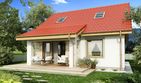 Graficzne opracowanie rzutów poglądowych widocznych na karcie projektu zostało wykonane przez Extradom.pl. Prezentowane przez Extradom.pl wizualizacje wykonane zostały przez autora projektu i należy poczytywać je jedynie za przykład i propozycję wykończenia, wizję architektoniczną autora projektu. Ostateczne wykończenie budynku może nastąpić na wiele sposobów. Szczegółowe rozwiązania zastosowane w oferowanej dokumentacji - w tym również ilość, lokalizacje i wygląd okien, drzwi, kominów - mogą w niewielkim stopniu różnić się od prezentowanej wizualizacji budynku.