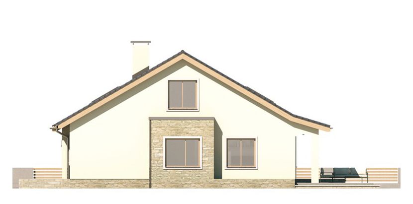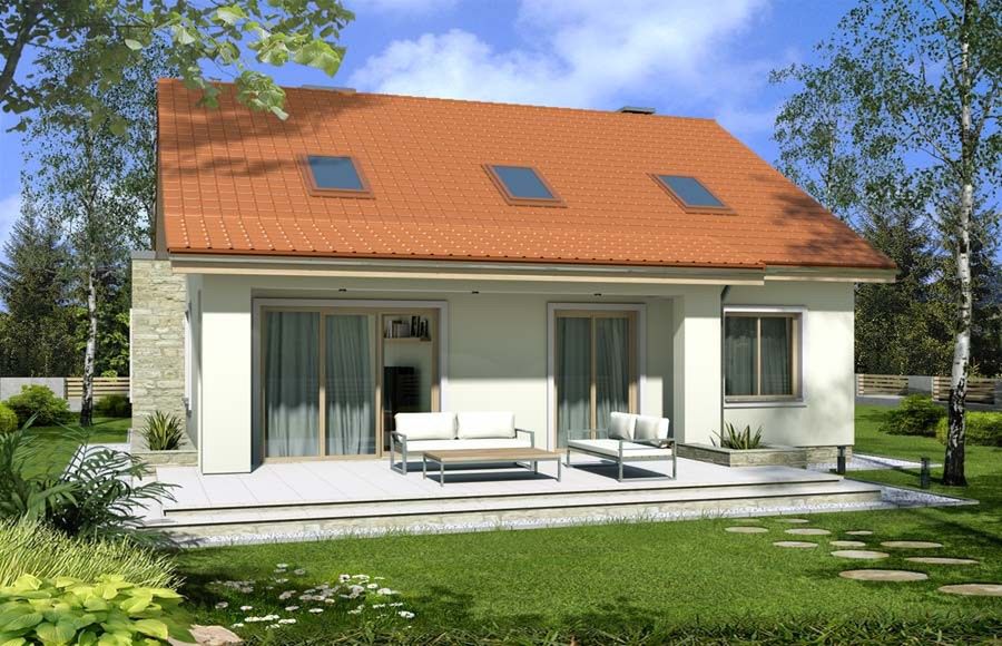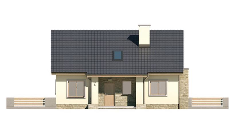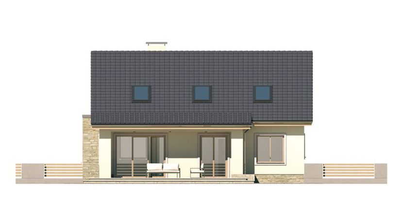 Graficzne opracowanie rzutów poglądowych widocznych na karcie projektu zostało wykonane przez Extradom.pl. Prezentowane przez Extradom.pl wizualizacje wykonane zostały przez autora projektu i należy poczytywać je jedynie za przykład i propozycję wykończenia, wizję architektoniczną autora projektu. Ostateczne wykończenie budynku może nastąpić na wiele sposobów. Szczegółowe rozwiązania zastosowane w oferowanej dokumentacji - w tym również ilość, lokalizacje i wygląd okien, drzwi, kominów - mogą w niewielkim stopniu różnić się od prezentowanej wizualizacji budynku.