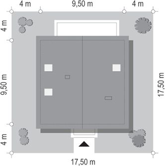 Graficzne opracowanie rzutów poglądowych widocznych na karcie projektu zostało wykonane przez Extradom.pl. Prezentowane przez Extradom.pl wizualizacje wykonane zostały przez autora projektu i należy poczytywać je jedynie za przykład i propozycję wykończenia, wizję architektoniczną autora projektu. Ostateczne wykończenie budynku może nastąpić na wiele sposobów. Szczegółowe rozwiązania zastosowane w oferowanej dokumentacji - w tym również ilość, lokalizacje i wygląd okien, drzwi, kominów - mogą w niewielkim stopniu różnić się od prezentowanej wizualizacji budynku.