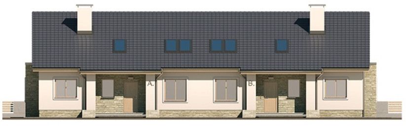 Graficzne opracowanie rzutów poglądowych widocznych na karcie projektu zostało wykonane przez Extradom.pl. Prezentowane przez Extradom.pl wizualizacje wykonane zostały przez autora projektu i należy poczytywać je jedynie za przykład i propozycję wykończenia, wizję architektoniczną autora projektu. Ostateczne wykończenie budynku może nastąpić na wiele sposobów. Szczegółowe rozwiązania zastosowane w oferowanej dokumentacji - w tym również ilość, lokalizacje i wygląd okien, drzwi, kominów - mogą w niewielkim stopniu różnić się od prezentowanej wizualizacji budynku.