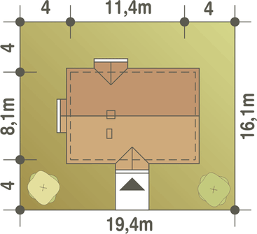 Graficzne opracowanie rzutów poglądowych widocznych na karcie projektu zostało wykonane przez Extradom.pl. Prezentowane przez Extradom.pl wizualizacje wykonane zostały przez autora projektu i należy poczytywać je jedynie za przykład i propozycję wykończenia, wizję architektoniczną autora projektu. Ostateczne wykończenie budynku może nastąpić na wiele sposobów. Szczegółowe rozwiązania zastosowane w oferowanej dokumentacji - w tym również ilość, lokalizacje i wygląd okien, drzwi, kominów - mogą w niewielkim stopniu różnić się od prezentowanej wizualizacji budynku.