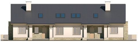 Graficzne opracowanie rzutów poglądowych widocznych na karcie projektu zostało wykonane przez Extradom.pl. Prezentowane przez Extradom.pl wizualizacje wykonane zostały przez autora projektu i należy poczytywać je jedynie za przykład i propozycję wykończenia, wizję architektoniczną autora projektu. Ostateczne wykończenie budynku może nastąpić na wiele sposobów. Szczegółowe rozwiązania zastosowane w oferowanej dokumentacji - w tym również ilość, lokalizacje i wygląd okien, drzwi, kominów - mogą w niewielkim stopniu różnić się od prezentowanej wizualizacji budynku.
