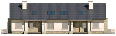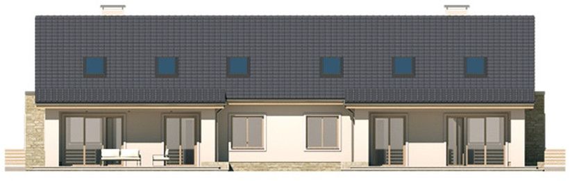 Graficzne opracowanie rzutów poglądowych widocznych na karcie projektu zostało wykonane przez Extradom.pl. Prezentowane przez Extradom.pl wizualizacje wykonane zostały przez autora projektu i należy poczytywać je jedynie za przykład i propozycję wykończenia, wizję architektoniczną autora projektu. Ostateczne wykończenie budynku może nastąpić na wiele sposobów. Szczegółowe rozwiązania zastosowane w oferowanej dokumentacji - w tym również ilość, lokalizacje i wygląd okien, drzwi, kominów - mogą w niewielkim stopniu różnić się od prezentowanej wizualizacji budynku.