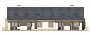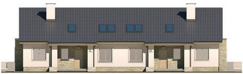 Graficzne opracowanie rzutów poglądowych widocznych na karcie projektu zostało wykonane przez Extradom.pl. Prezentowane przez Extradom.pl wizualizacje wykonane zostały przez autora projektu i należy poczytywać je jedynie za przykład i propozycję wykończenia, wizję architektoniczną autora projektu. Ostateczne wykończenie budynku może nastąpić na wiele sposobów. Szczegółowe rozwiązania zastosowane w oferowanej dokumentacji - w tym również ilość, lokalizacje i wygląd okien, drzwi, kominów - mogą w niewielkim stopniu różnić się od prezentowanej wizualizacji budynku.