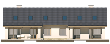 Graficzne opracowanie rzutów poglądowych widocznych na karcie projektu zostało wykonane przez Extradom.pl. Prezentowane przez Extradom.pl wizualizacje wykonane zostały przez autora projektu i należy poczytywać je jedynie za przykład i propozycję wykończenia, wizję architektoniczną autora projektu. Ostateczne wykończenie budynku może nastąpić na wiele sposobów. Szczegółowe rozwiązania zastosowane w oferowanej dokumentacji - w tym również ilość, lokalizacje i wygląd okien, drzwi, kominów - mogą w niewielkim stopniu różnić się od prezentowanej wizualizacji budynku.