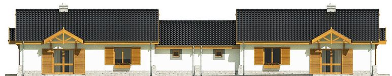 Graficzne opracowanie rzutów poglądowych widocznych na karcie projektu zostało wykonane przez Extradom.pl. Prezentowane przez Extradom.pl wizualizacje wykonane zostały przez autora projektu i należy poczytywać je jedynie za przykład i propozycję wykończenia, wizję architektoniczną autora projektu. Ostateczne wykończenie budynku może nastąpić na wiele sposobów. Szczegółowe rozwiązania zastosowane w oferowanej dokumentacji - w tym również ilość, lokalizacje i wygląd okien, drzwi, kominów - mogą w niewielkim stopniu różnić się od prezentowanej wizualizacji budynku.