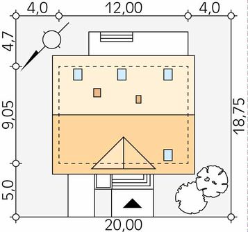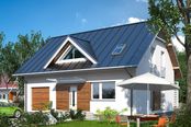 Graficzne opracowanie rzutów poglądowych widocznych na karcie projektu zostało wykonane przez Extradom.pl. Prezentowane przez Extradom.pl wizualizacje wykonane zostały przez autora projektu i należy poczytywać je jedynie za przykład i propozycję wykończenia, wizję architektoniczną autora projektu. Ostateczne wykończenie budynku może nastąpić na wiele sposobów. Szczegółowe rozwiązania zastosowane w oferowanej dokumentacji - w tym również ilość, lokalizacje i wygląd okien, drzwi, kominów - mogą w niewielkim stopniu różnić się od prezentowanej wizualizacji budynku.