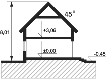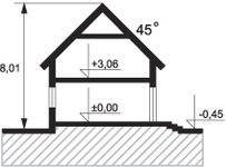Ściany jednowarstwowe: beton komórkowy. Strop: żelbetowy monolityczny. Dach: dachówka.