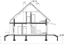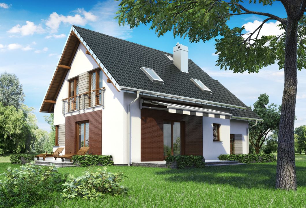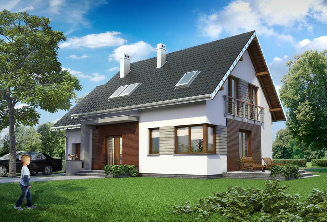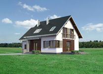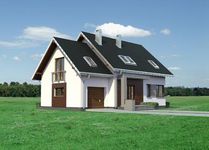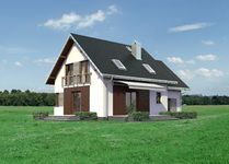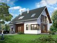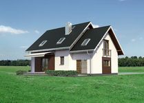 Graficzne opracowanie rzutów poglądowych widocznych na karcie projektu zostało wykonane przez Extradom.pl. Prezentowane przez Extradom.pl wizualizacje wykonane zostały przez autora projektu i należy poczytywać je jedynie za przykład i propozycję wykończenia, wizję architektoniczną autora projektu. Ostateczne wykończenie budynku może nastąpić na wiele sposobów. Szczegółowe rozwiązania zastosowane w oferowanej dokumentacji - w tym również ilość, lokalizacje i wygląd okien, drzwi, kominów - mogą w niewielkim stopniu różnić się od prezentowanej wizualizacji budynku.
