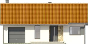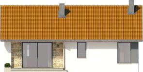 Budynek zaprojektowano ze ścianami z betonu komórkowego ze styropianem i jest oczywiście możliwość wykonania adaptacji pod inną technologię. Elewacje wykończono tynkiem z fragmentami obłożonymi płytkami lub kamieniem. Dom nie posiada ciężkiego stropu, a sufit podwieszono bezpośrednio do więźby drewnianej. Pokrycie dachu stanowić może dachówka ceramiczna albo cementowa. Oferujemy ten projekt również w wersji lustrzanej.