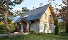Ściany: 2-warstwowe - bloczek z betonu komórkowego SOLBET 24 cm + styropian. Stropy: drewniane. Dach: dachówka ceramiczna CREATON, kąt nachylenia 45°. Ogrzewanie: gazowe. Stolarka: okna dachowe marki Velux.