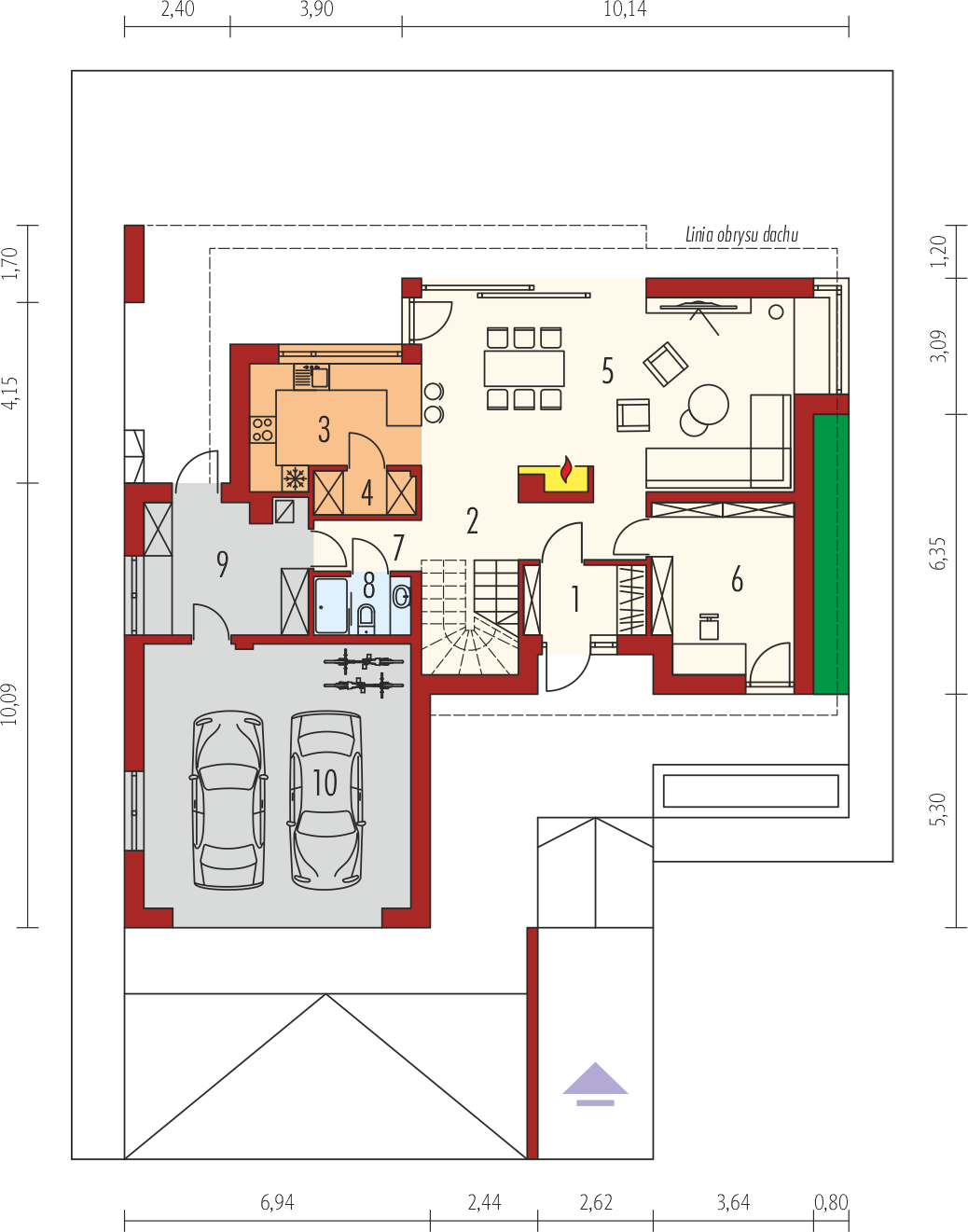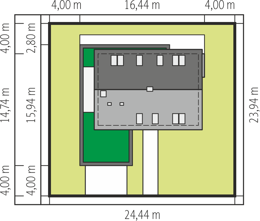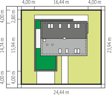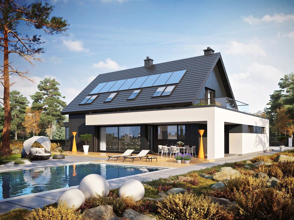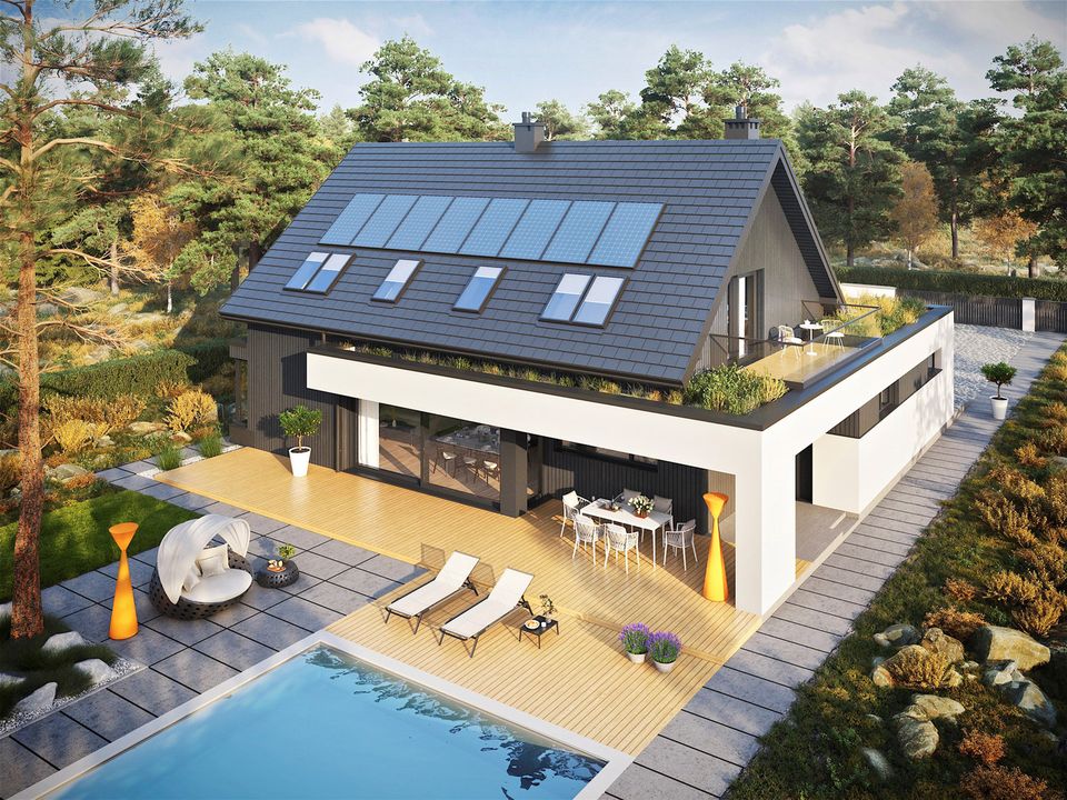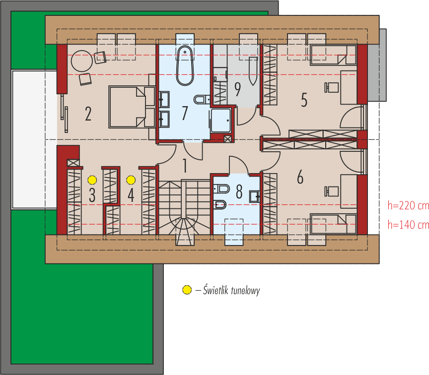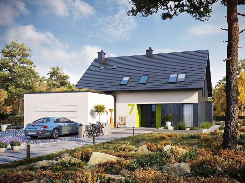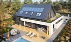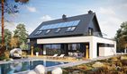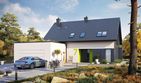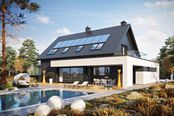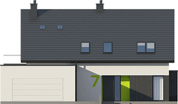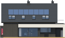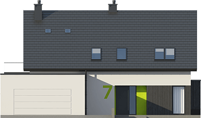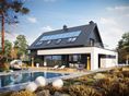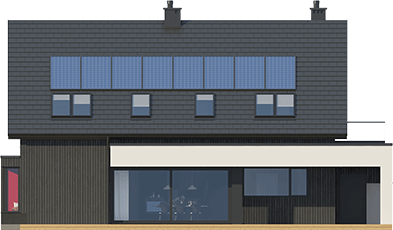 Graficzne opracowanie rzutów poglądowych widocznych na karcie projektu zostało wykonane przez Extradom.pl. Prezentowane przez Extradom.pl wizualizacje wykonane zostały przez autora projektu i należy poczytywać je jedynie za przykład i propozycję wykończenia, wizję architektoniczną autora projektu. Ostateczne wykończenie budynku może nastąpić na wiele sposobów. Szczegółowe rozwiązania zastosowane w oferowanej dokumentacji - w tym również ilość, lokalizacje i wygląd okien, drzwi, kominów - mogą w niewielkim stopniu różnić się od prezentowanej wizualizacji budynku.