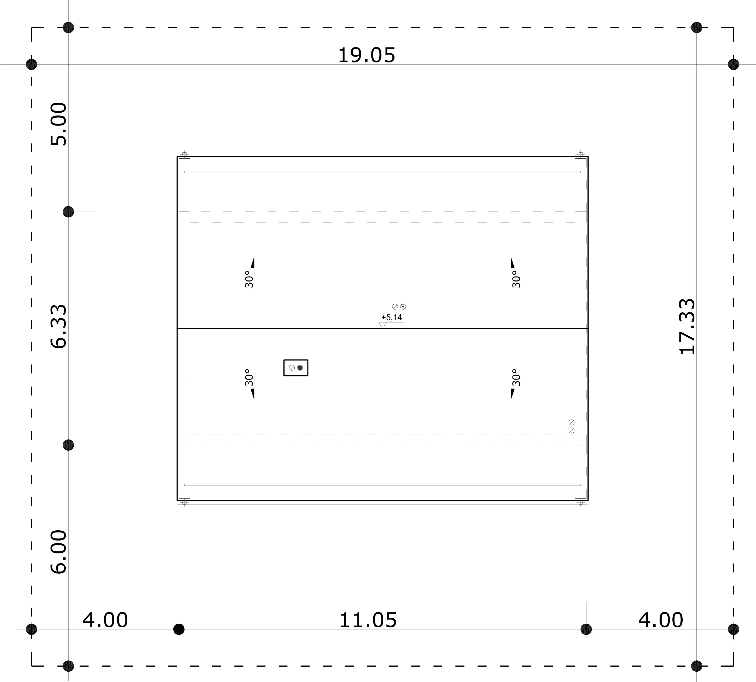 fundamenty: płyta fundamentowa, ściany zewnętrzne: ściana szkieletowa 30cm, ściany wewnętrzne: ściana szkieletowa 17cm; 12 cm, strop: przestrzeń otwarta, konstrukcja i pokrycie dachu : drewniana jętkowa, blacha, elewacja: tynk, deska,