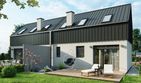 Graficzne opracowanie rzutów poglądowych widocznych na karcie projektu zostało wykonane przez Extradom.pl. Prezentowane przez Extradom.pl wizualizacje wykonane zostały przez autora projektu i należy poczytywać je jedynie za przykład i propozycję wykończenia, wizję architektoniczną autora projektu. Ostateczne wykończenie budynku może nastąpić na wiele sposobów. Szczegółowe rozwiązania zastosowane w oferowanej dokumentacji - w tym również ilość, lokalizacje i wygląd okien, drzwi, kominów - mogą w niewielkim stopniu różnić się od prezentowanej wizualizacji budynku.