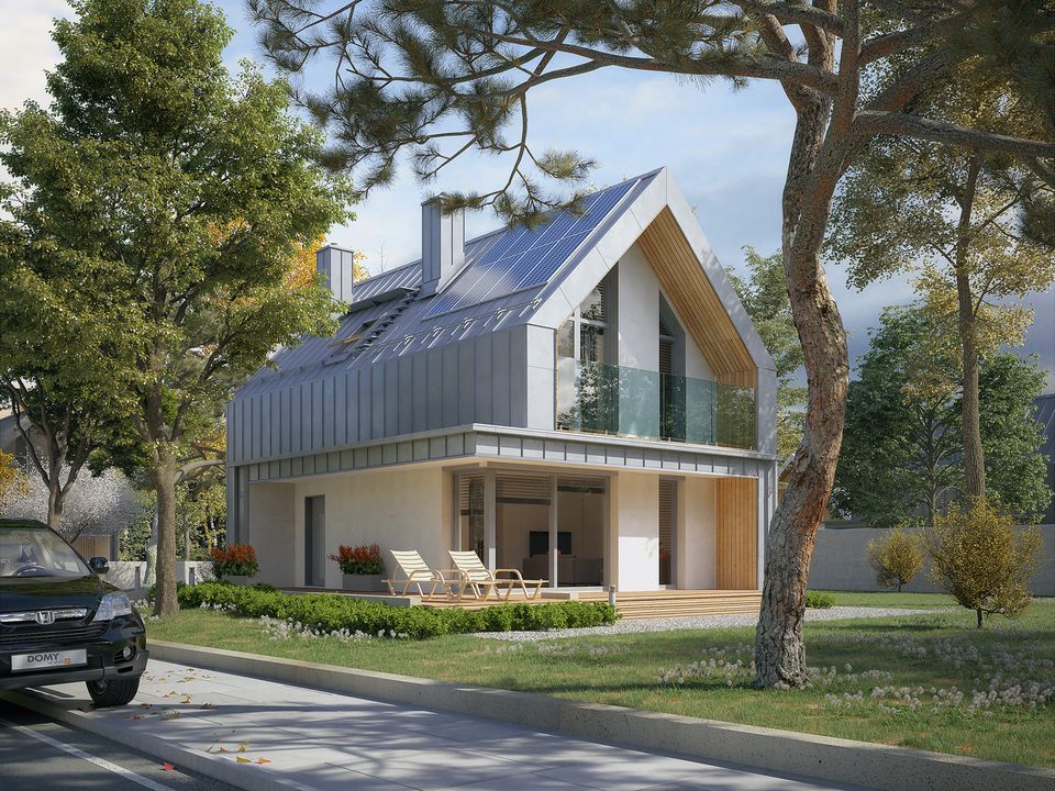 To kompaktowy, nowoczesny dom z poddaszem użytkowym, stworzony z myślą o trzy- lub czteroosobowej rodzinie. Prosta bryła zwieńczona dwuspadowym dachem sprawia, że jest to projekt ekonomiczny w budowie, który łączy funkcjonalność z atrakcyjnym wyglądem.