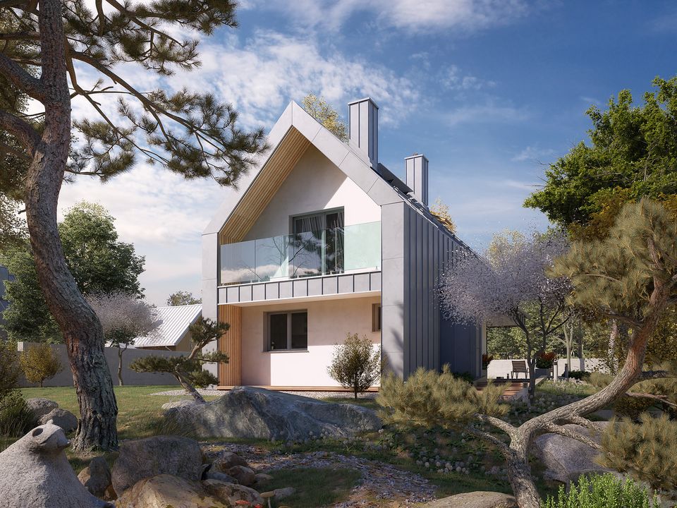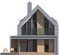 Graficzne opracowanie rzutów poglądowych widocznych na karcie projektu zostało wykonane przez Extradom.pl. Prezentowane przez Extradom.pl wizualizacje wykonane zostały przez autora projektu i należy poczytywać je jedynie za przykład i propozycję wykończenia, wizję architektoniczną autora projektu. Ostateczne wykończenie budynku może nastąpić na wiele sposobów. Szczegółowe rozwiązania zastosowane w oferowanej dokumentacji - w tym również ilość, lokalizacje i wygląd okien, drzwi, kominów - mogą w niewielkim stopniu różnić się od prezentowanej wizualizacji budynku.