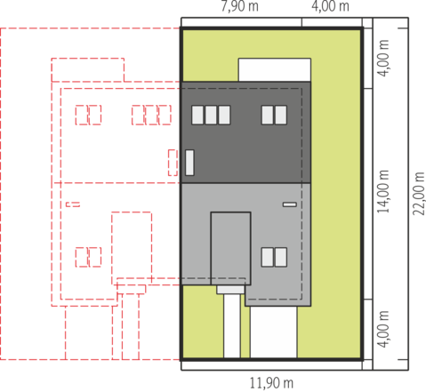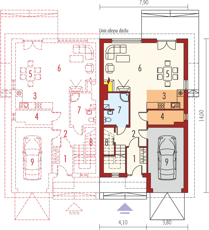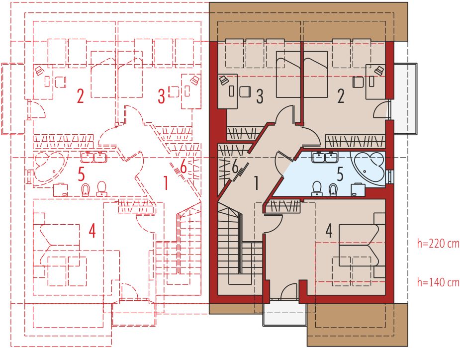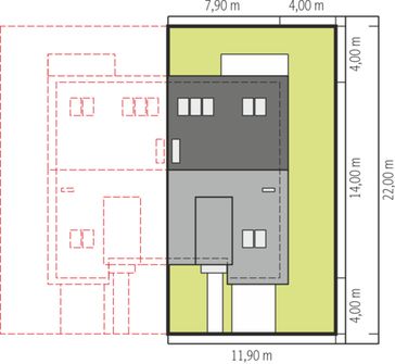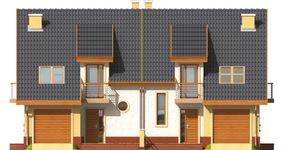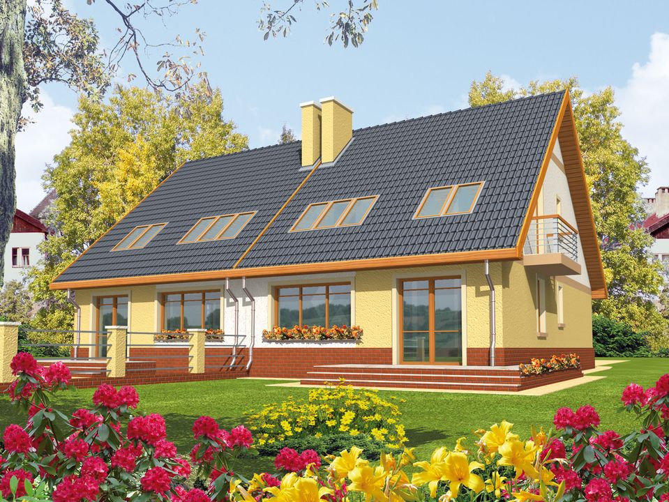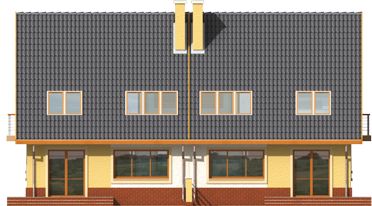 Graficzne opracowanie rzutów poglądowych widocznych na karcie projektu zostało wykonane przez Extradom.pl. Prezentowane przez Extradom.pl wizualizacje wykonane zostały przez autora projektu i należy poczytywać je jedynie za przykład i propozycję wykończenia, wizję architektoniczną autora projektu. Ostateczne wykończenie budynku może nastąpić na wiele sposobów. Szczegółowe rozwiązania zastosowane w oferowanej dokumentacji - w tym również ilość, lokalizacje i wygląd okien, drzwi, kominów - mogą w niewielkim stopniu różnić się od prezentowanej wizualizacji budynku.
