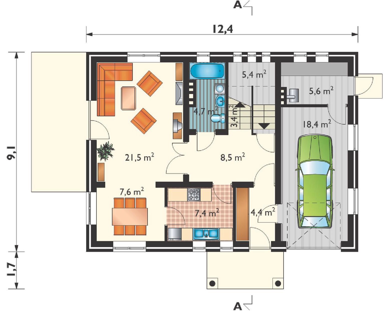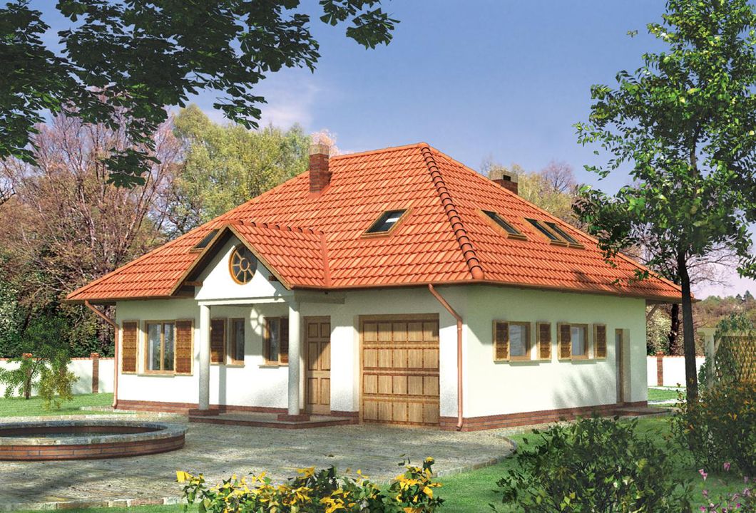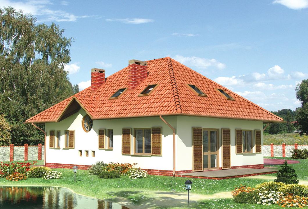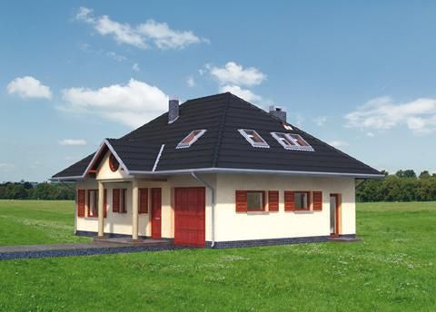 Graficzne opracowanie rzutów poglądowych widocznych na karcie projektu zostało wykonane przez Extradom.pl. Prezentowane przez Extradom.pl wizualizacje wykonane zostały przez autora projektu i należy poczytywać je jedynie za przykład i propozycję wykończenia, wizję architektoniczną autora projektu. Ostateczne wykończenie budynku może nastąpić na wiele sposobów. Szczegółowe rozwiązania zastosowane w oferowanej dokumentacji - w tym również ilość, lokalizacje i wygląd okien, drzwi, kominów - mogą w niewielkim stopniu różnić się od prezentowanej wizualizacji budynku.