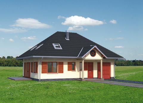 Technologia i konstrukcja: murowana – ceramika. Ściany zewnętrzne: cegła lub pustak ceramiczny + styropian + cegła kratówka (nadproża ceramiczne do rolet zewnętrznych TYTAN). Ściany wewnętrzne: cegła kratówka. Strop: żelbetowy. Konstrukcja dachu: jętkowa, drewniana. Rodzaj schodów: żelbetowe. Typ ogrzewania: kocioł na gaz. Wentylacja: mechaniczna. Aneks na paliwo stałe: dostępny (zapytaj o cenę). Pokrycie dachu: dachówka cementowa lub blacha. Elewacja: tynk cementowo-wapienny.