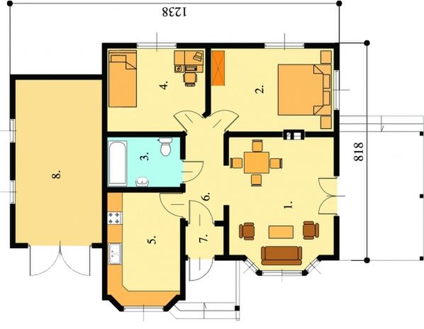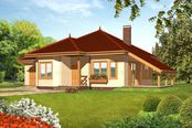 Graficzne opracowanie rzutów poglądowych widocznych na karcie projektu zostało wykonane przez Extradom.pl. Prezentowane przez Extradom.pl wizualizacje wykonane zostały przez autora projektu i należy poczytywać je jedynie za przykład i propozycję wykończenia, wizję architektoniczną autora projektu. Ostateczne wykończenie budynku może nastąpić na wiele sposobów. Szczegółowe rozwiązania zastosowane w oferowanej dokumentacji - w tym również ilość, lokalizacje i wygląd okien, drzwi, kominów - mogą w niewielkim stopniu różnić się od prezentowanej wizualizacji budynku.