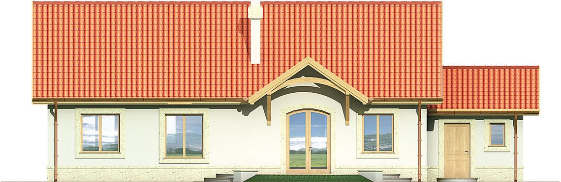 Graficzne opracowanie rzutów poglądowych widocznych na karcie projektu zostało wykonane przez Extradom.pl. Prezentowane przez Extradom.pl wizualizacje wykonane zostały przez autora projektu i należy poczytywać je jedynie za przykład i propozycję wykończenia, wizję architektoniczną autora projektu. Ostateczne wykończenie budynku może nastąpić na wiele sposobów. Szczegółowe rozwiązania zastosowane w oferowanej dokumentacji - w tym również ilość, lokalizacje i wygląd okien, drzwi, kominów - mogą w niewielkim stopniu różnić się od prezentowanej wizualizacji budynku.