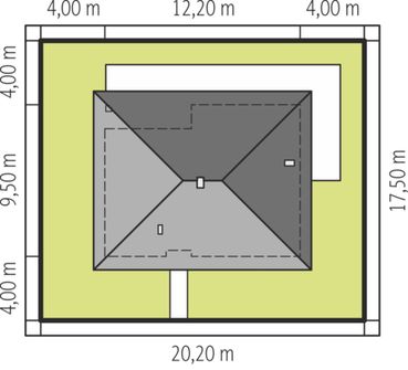 Graficzne opracowanie rzutów poglądowych widocznych na karcie projektu zostało wykonane przez Extradom.pl. Prezentowane przez Extradom.pl wizualizacje wykonane zostały przez autora projektu i należy poczytywać je jedynie za przykład i propozycję wykończenia, wizję architektoniczną autora projektu. Ostateczne wykończenie budynku może nastąpić na wiele sposobów. Szczegółowe rozwiązania zastosowane w oferowanej dokumentacji - w tym również ilość, lokalizacje i wygląd okien, drzwi, kominów - mogą w niewielkim stopniu różnić się od prezentowanej wizualizacji budynku.