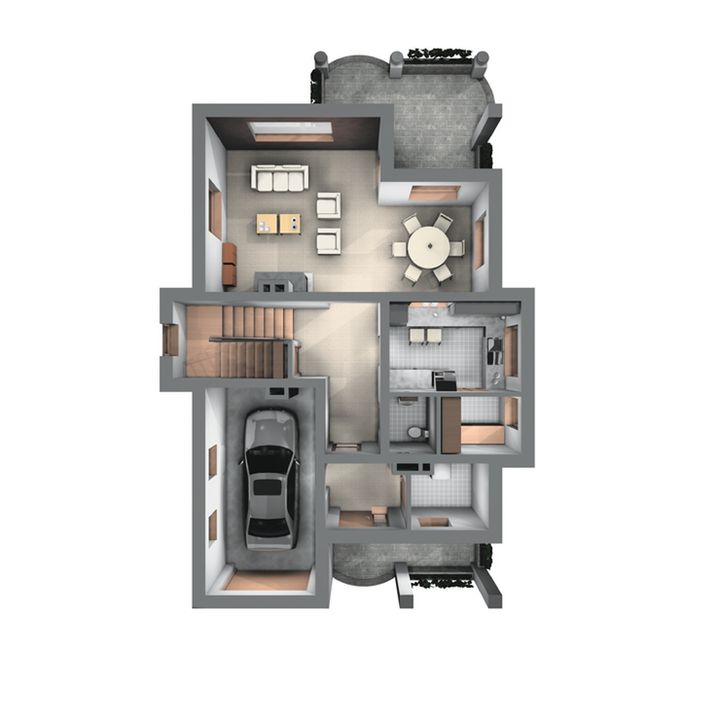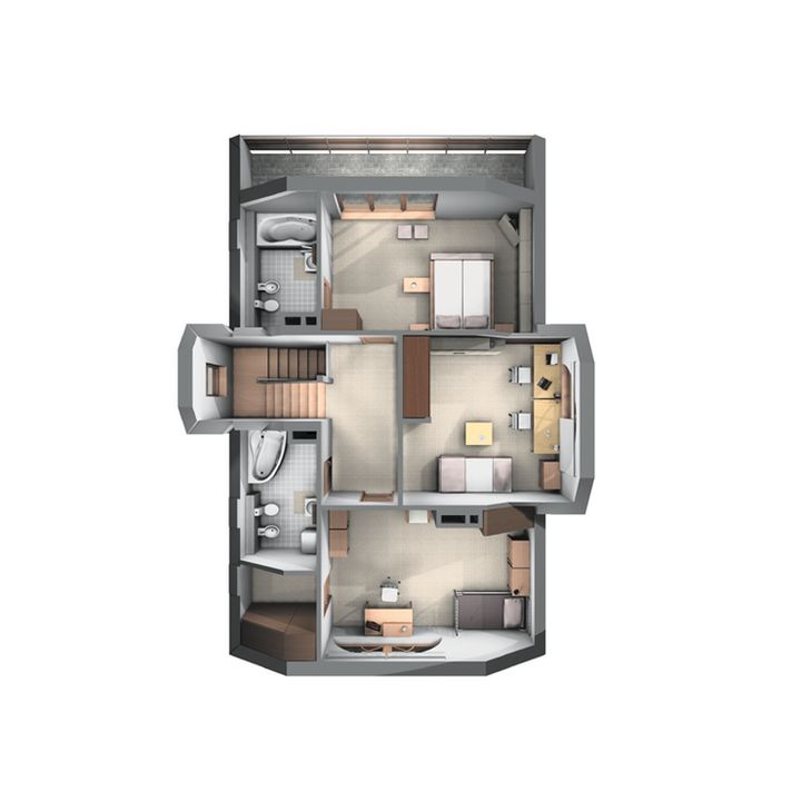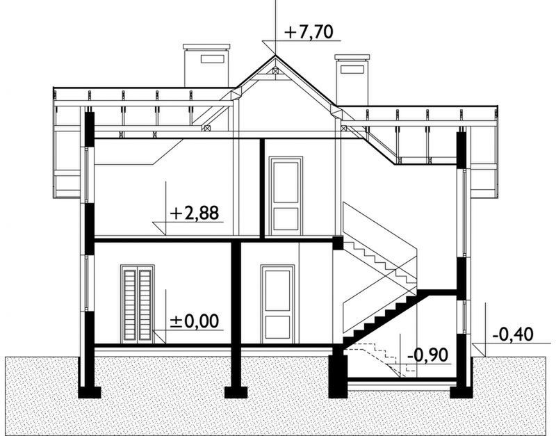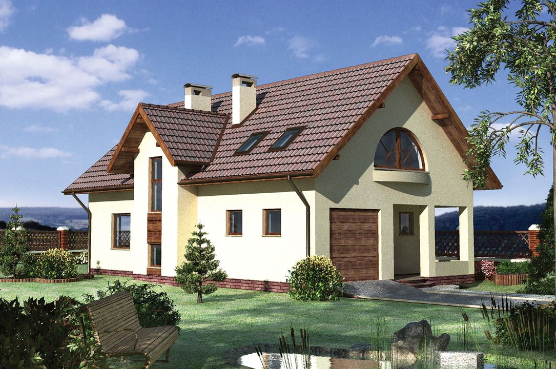 Graficzne opracowanie rzutów poglądowych widocznych na karcie projektu zostało wykonane przez Extradom.pl. Prezentowane przez Extradom.pl wizualizacje wykonane zostały przez autora projektu i należy poczytywać je jedynie za przykład i propozycję wykończenia, wizję architektoniczną autora projektu. Ostateczne wykończenie budynku może nastąpić na wiele sposobów. Szczegółowe rozwiązania zastosowane w oferowanej dokumentacji - w tym również ilość, lokalizacje i wygląd okien, drzwi, kominów - mogą w niewielkim stopniu różnić się od prezentowanej wizualizacji budynku.