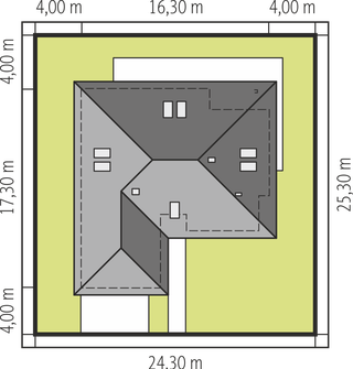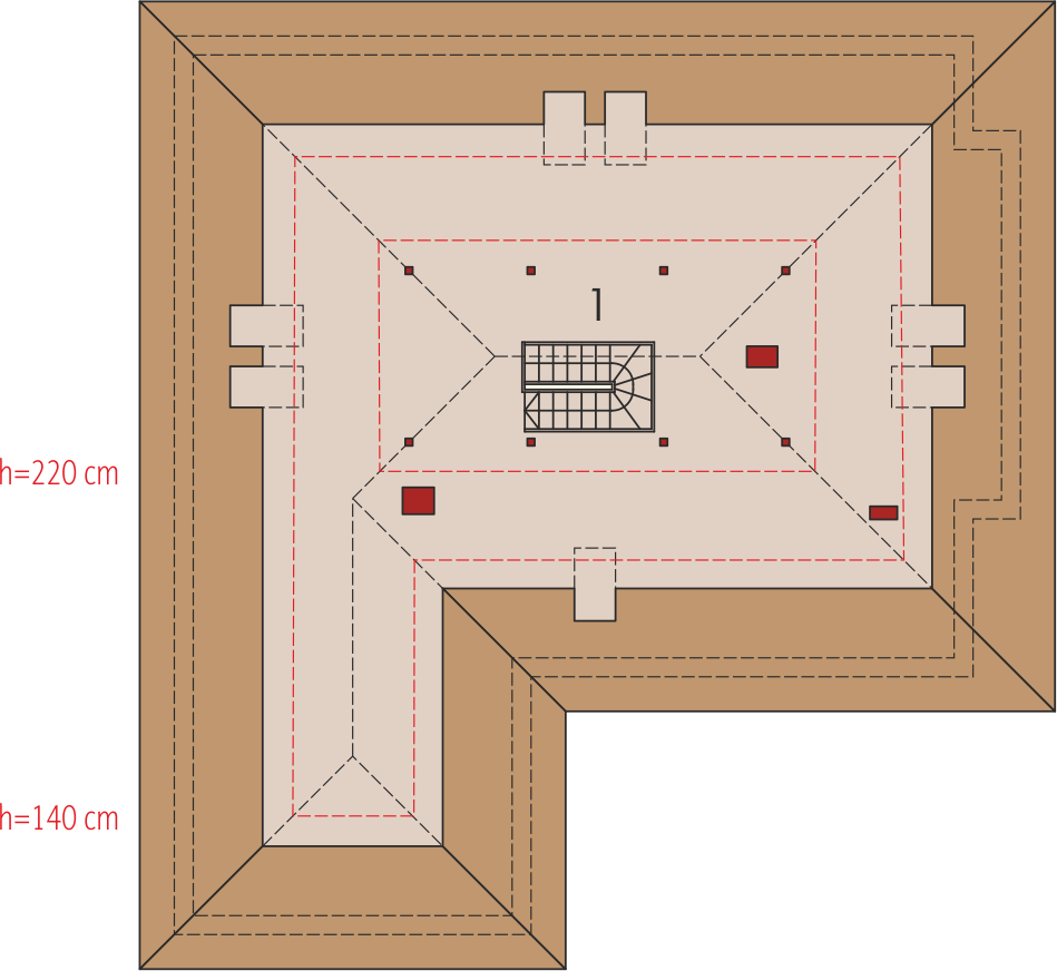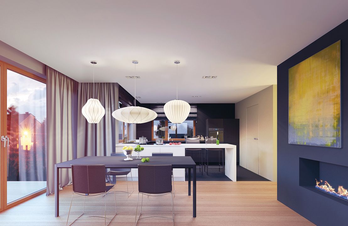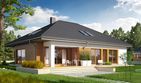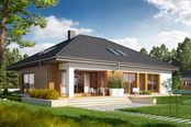 Graficzne opracowanie rzutów poglądowych widocznych na karcie projektu zostało wykonane przez Extradom.pl. Prezentowane przez Extradom.pl wizualizacje wykonane zostały przez autora projektu i należy poczytywać je jedynie za przykład i propozycję wykończenia, wizję architektoniczną autora projektu. Ostateczne wykończenie budynku może nastąpić na wiele sposobów. Szczegółowe rozwiązania zastosowane w oferowanej dokumentacji - w tym również ilość, lokalizacje i wygląd okien, drzwi, kominów - mogą w niewielkim stopniu różnić się od prezentowanej wizualizacji budynku.