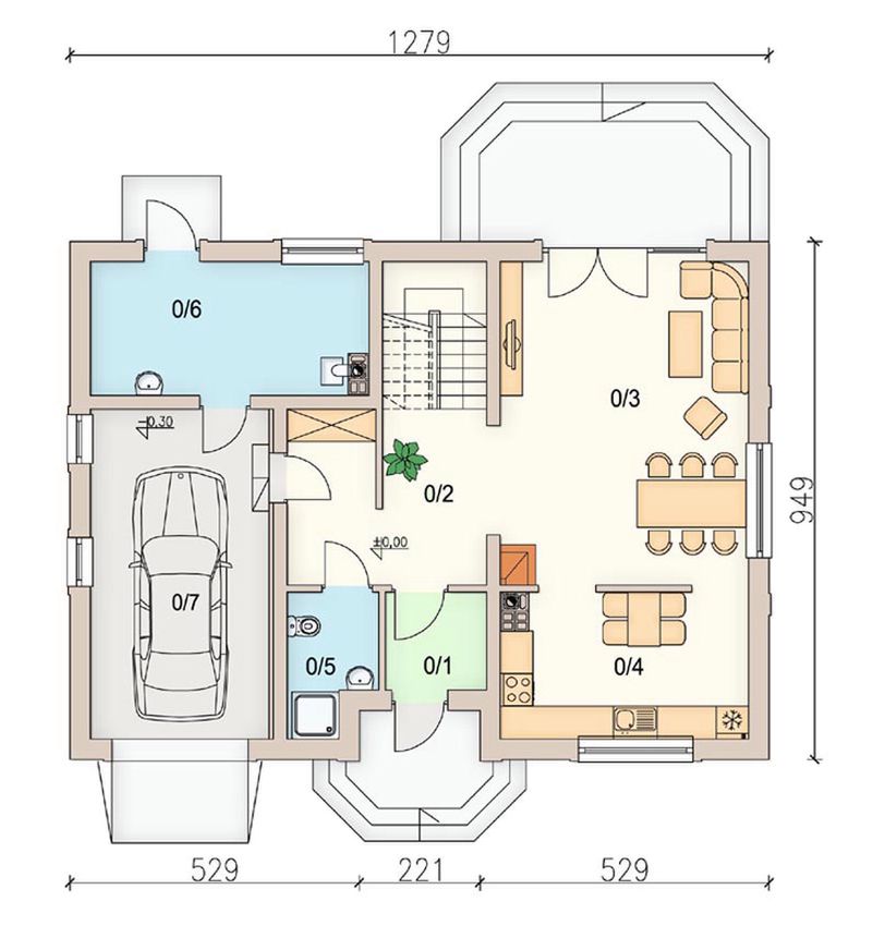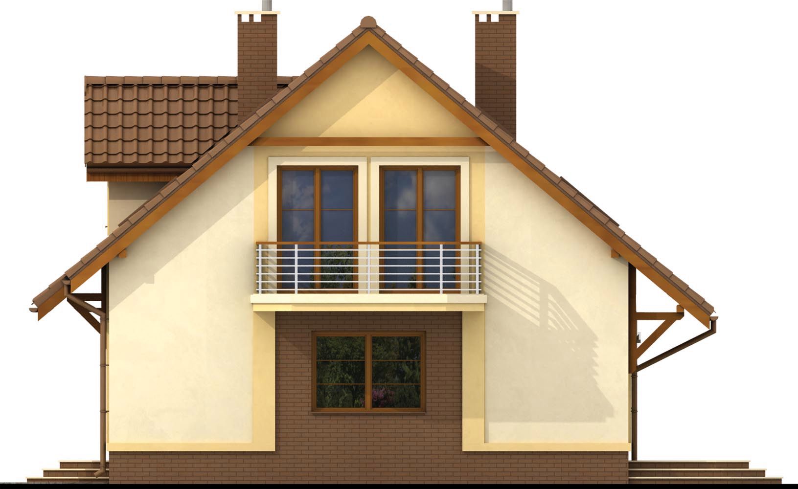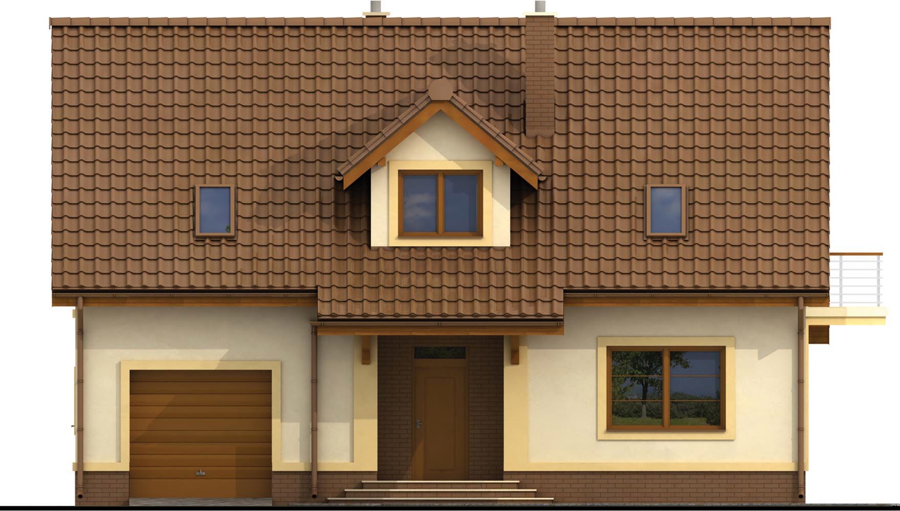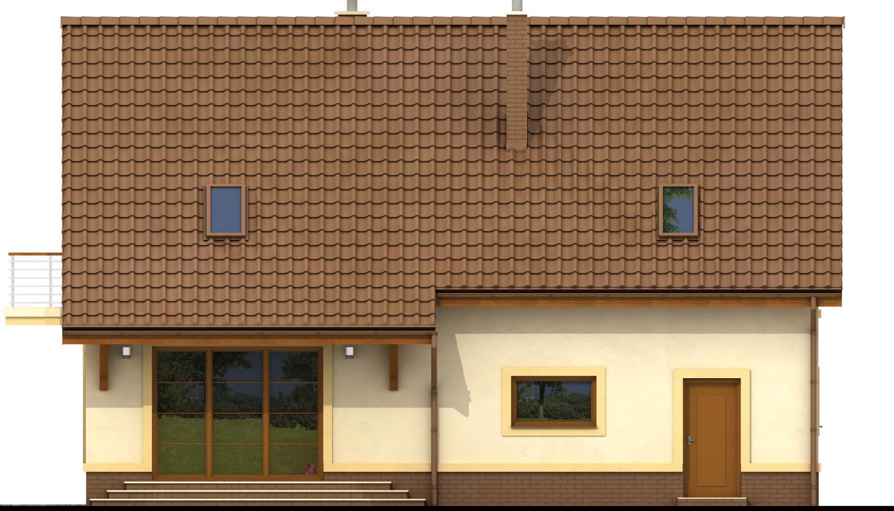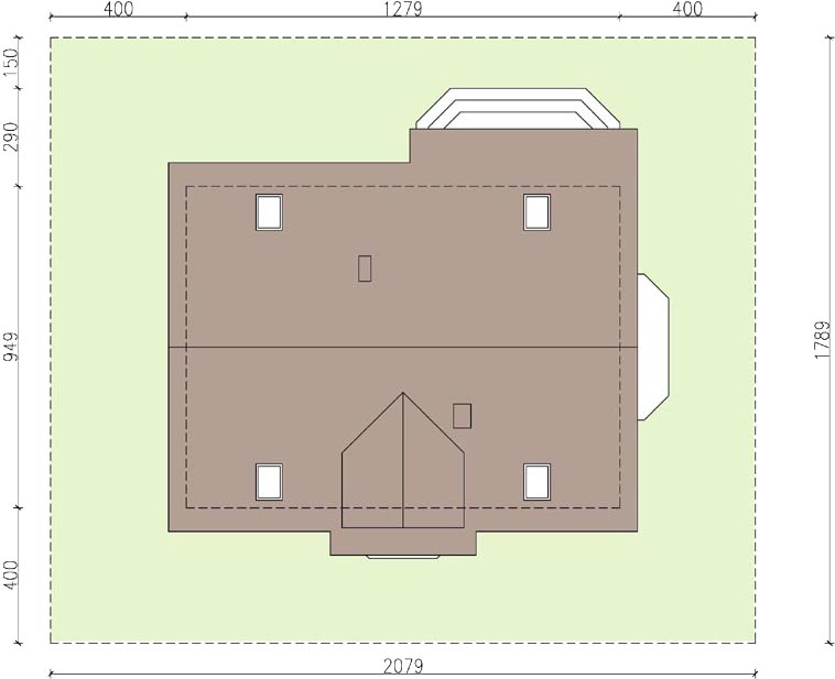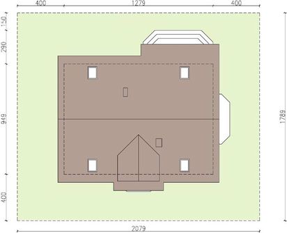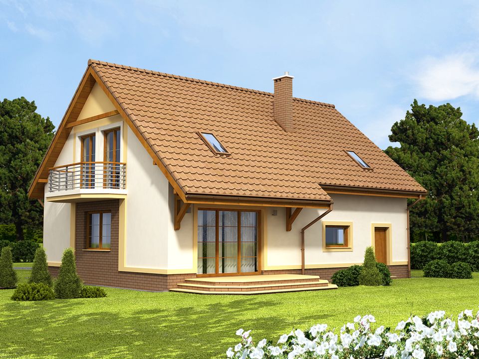Graficzne opracowanie rzutów poglądowych widocznych na karcie projektu zostało wykonane przez Extradom.pl. Prezentowane przez Extradom.pl wizualizacje wykonane zostały przez autora projektu i należy poczytywać je jedynie za przykład i propozycję wykończenia, wizję architektoniczną autora projektu. Ostateczne wykończenie budynku może nastąpić na wiele sposobów. Szczegółowe rozwiązania zastosowane w oferowanej dokumentacji - w tym również ilość, lokalizacje i wygląd okien, drzwi, kominów - mogą w niewielkim stopniu różnić się od prezentowanej wizualizacji budynku.
