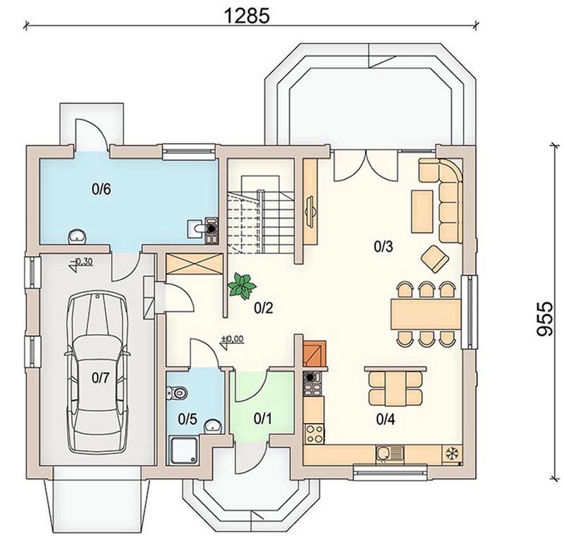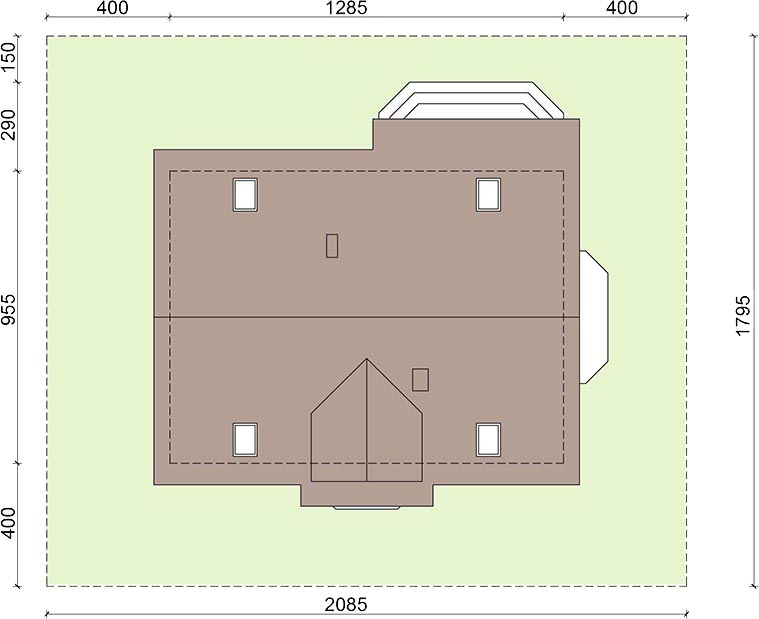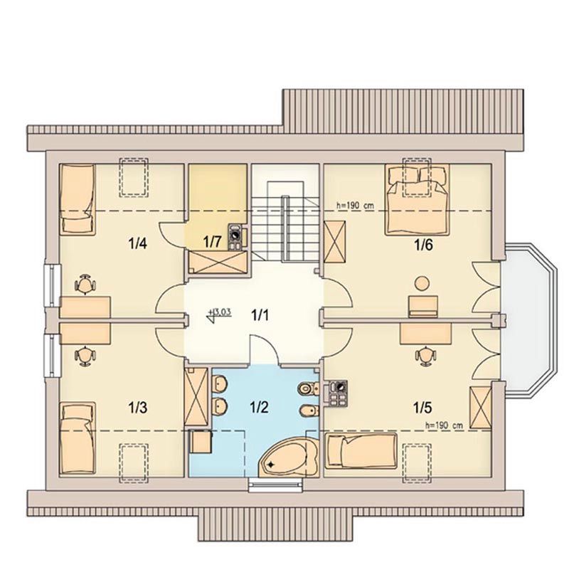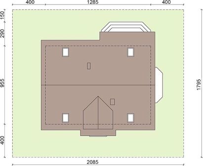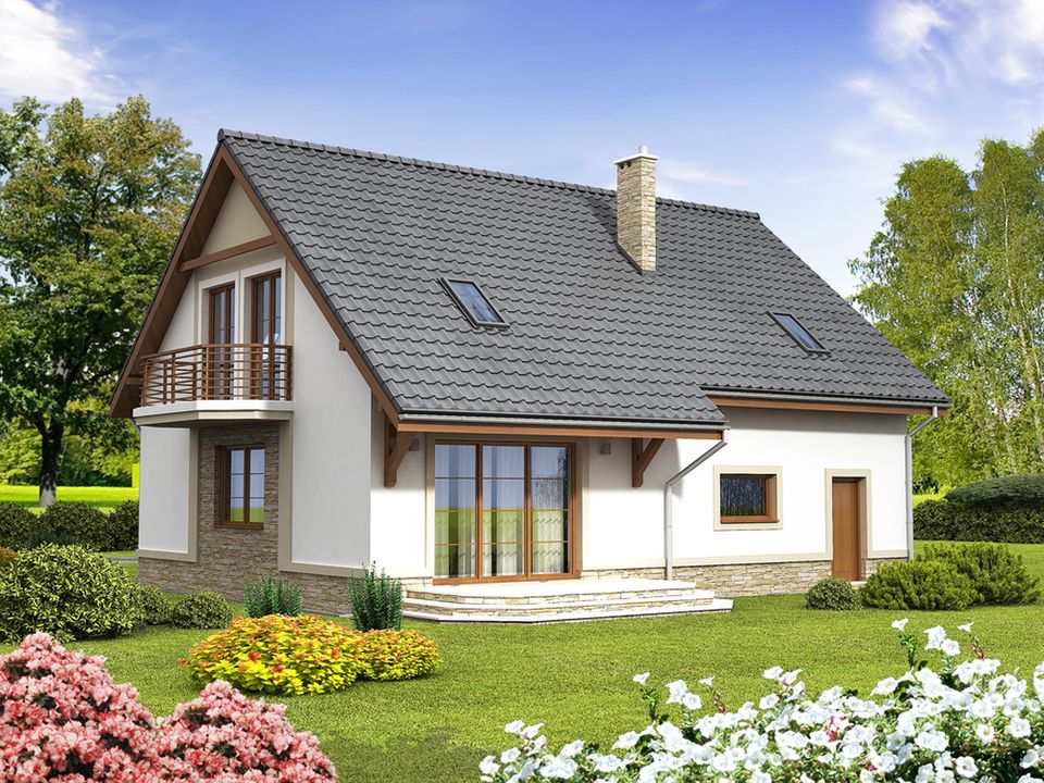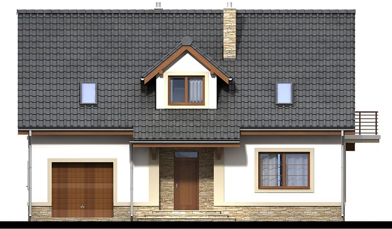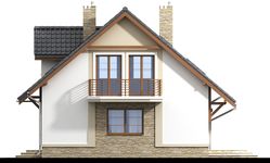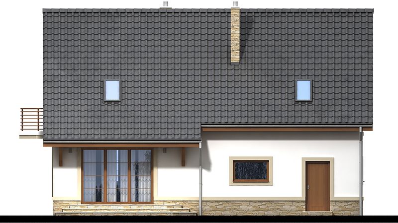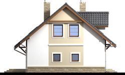 Graficzne opracowanie rzutów poglądowych widocznych na karcie projektu zostało wykonane przez Extradom.pl. Prezentowane przez Extradom.pl wizualizacje wykonane zostały przez autora projektu i należy poczytywać je jedynie za przykład i propozycję wykończenia, wizję architektoniczną autora projektu. Ostateczne wykończenie budynku może nastąpić na wiele sposobów. Szczegółowe rozwiązania zastosowane w oferowanej dokumentacji - w tym również ilość, lokalizacje i wygląd okien, drzwi, kominów - mogą w niewielkim stopniu różnić się od prezentowanej wizualizacji budynku.