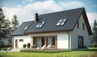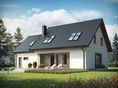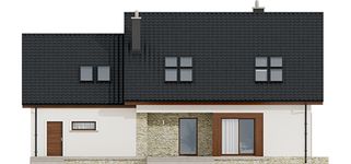 Graficzne opracowanie rzutów poglądowych widocznych na karcie projektu zostało wykonane przez Extradom.pl. Prezentowane przez Extradom.pl wizualizacje wykonane zostały przez autora projektu i należy poczytywać je jedynie za przykład i propozycję wykończenia, wizję architektoniczną autora projektu. Ostateczne wykończenie budynku może nastąpić na wiele sposobów. Szczegółowe rozwiązania zastosowane w oferowanej dokumentacji - w tym również ilość, lokalizacje i wygląd okien, drzwi, kominów - mogą w niewielkim stopniu różnić się od prezentowanej wizualizacji budynku.