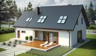 Graficzne opracowanie rzutów poglądowych widocznych na karcie projektu zostało wykonane przez Extradom.pl. Prezentowane przez Extradom.pl wizualizacje wykonane zostały przez autora projektu i należy poczytywać je jedynie za przykład i propozycję wykończenia, wizję architektoniczną autora projektu. Ostateczne wykończenie budynku może nastąpić na wiele sposobów. Szczegółowe rozwiązania zastosowane w oferowanej dokumentacji - w tym również ilość, lokalizacje i wygląd okien, drzwi, kominów - mogą w niewielkim stopniu różnić się od prezentowanej wizualizacji budynku.