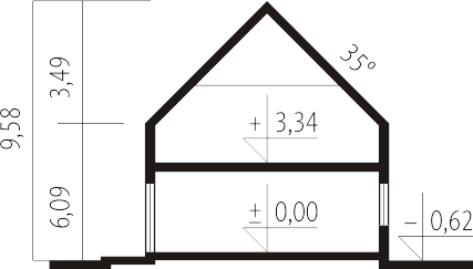 Ściany zewnętrzne: murowane. Strop: gęstożebrowy. Dach: konstrukcja drewniana, blacha. Inne: schody wewnętrzne drewniane. Ogrzewanie: kocioł gazowy, rozprowadzenie ciepła: grzejniki. Wentylacja: grawitacyjna. Elewacje: tynk mineralny i okładzina drewniana. Stolarka: drewniana lub PCV. Rolety zewnętrzne naokienne w systemie CleverBox firmy BeClever..