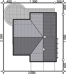 Budynek zaprojektowany w technologii tradycyjnej murowanej ze stropami gęstożebrowymi. Ściany zewnętrzne z bloczków wapienno-piaskowych ocieplonych wełną mineralną twardą. Dom przykryty dachem wielospadowym o konstrukcji drewnianej. Pokrycie dachu dachówką ceramiczną lub cementową. Ściany tynkowane, cokół wykonano z cegły lub okładziny klinkierowej. Stolarka okienna drewniana lub PCV.