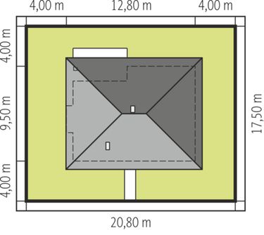 Graficzne opracowanie rzutów poglądowych widocznych na karcie projektu zostało wykonane przez Extradom.pl. Prezentowane przez Extradom.pl wizualizacje wykonane zostały przez autora projektu i należy poczytywać je jedynie za przykład i propozycję wykończenia, wizję architektoniczną autora projektu. Ostateczne wykończenie budynku może nastąpić na wiele sposobów. Szczegółowe rozwiązania zastosowane w oferowanej dokumentacji - w tym również ilość, lokalizacje i wygląd okien, drzwi, kominów - mogą w niewielkim stopniu różnić się od prezentowanej wizualizacji budynku.