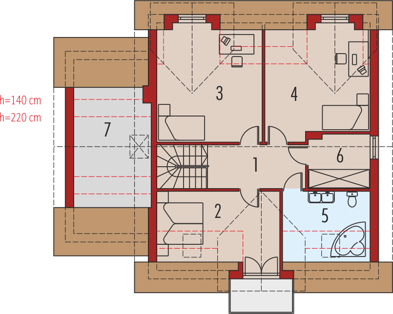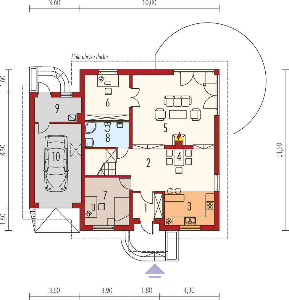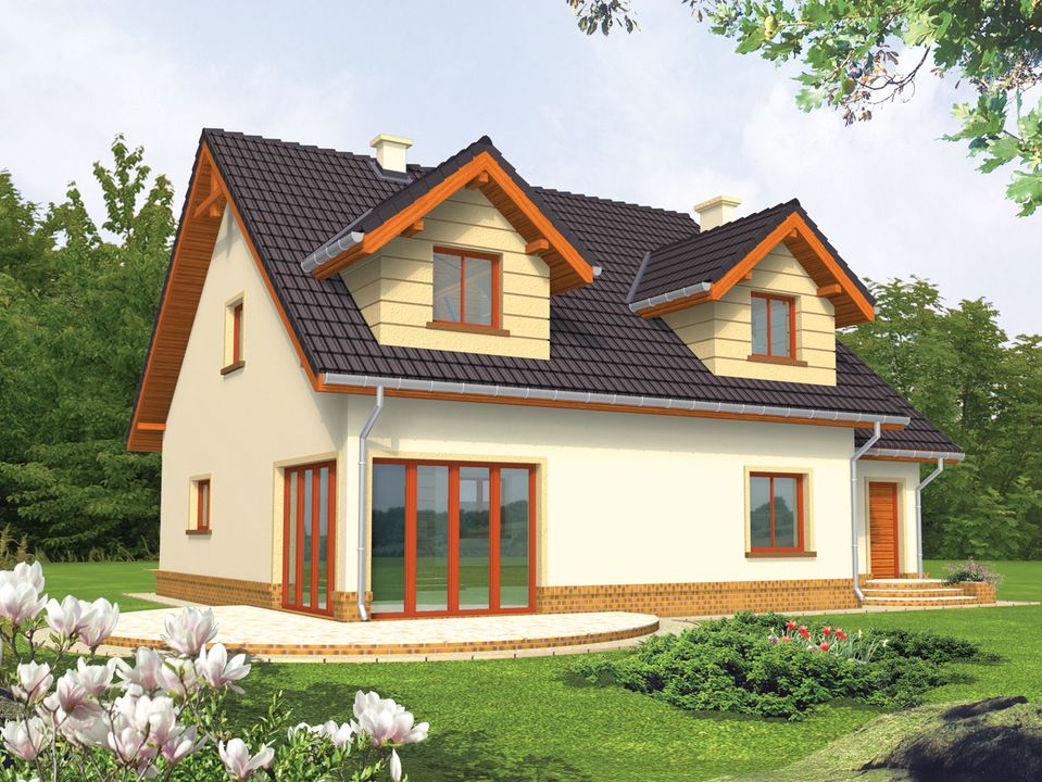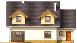Graficzne opracowanie rzutów poglądowych widocznych na karcie projektu zostało wykonane przez Extradom.pl. Prezentowane przez Extradom.pl wizualizacje wykonane zostały przez autora projektu i należy poczytywać je jedynie za przykład i propozycję wykończenia, wizję architektoniczną autora projektu. Ostateczne wykończenie budynku może nastąpić na wiele sposobów. Szczegółowe rozwiązania zastosowane w oferowanej dokumentacji - w tym również ilość, lokalizacje i wygląd okien, drzwi, kominów - mogą w niewielkim stopniu różnić się od prezentowanej wizualizacji budynku.