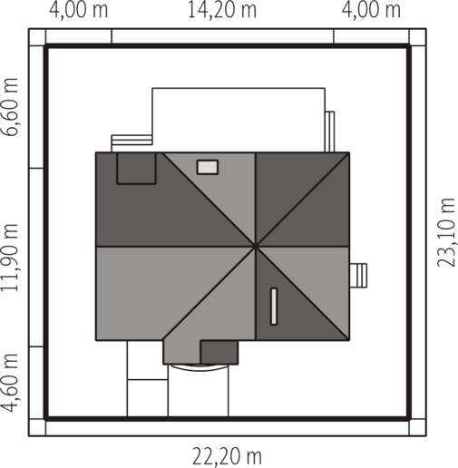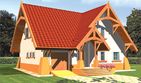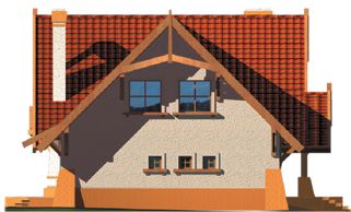 Graficzne opracowanie rzutów poglądowych widocznych na karcie projektu zostało wykonane przez Extradom.pl. Prezentowane przez Extradom.pl wizualizacje wykonane zostały przez autora projektu i należy poczytywać je jedynie za przykład i propozycję wykończenia, wizję architektoniczną autora projektu. Ostateczne wykończenie budynku może nastąpić na wiele sposobów. Szczegółowe rozwiązania zastosowane w oferowanej dokumentacji - w tym również ilość, lokalizacje i wygląd okien, drzwi, kominów - mogą w niewielkim stopniu różnić się od prezentowanej wizualizacji budynku.