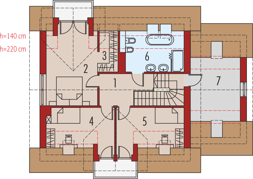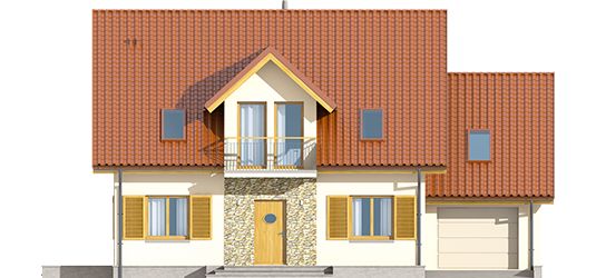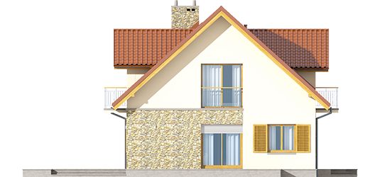 Graficzne opracowanie rzutów poglądowych widocznych na karcie projektu zostało wykonane przez Extradom.pl. Prezentowane przez Extradom.pl wizualizacje wykonane zostały przez autora projektu i należy poczytywać je jedynie za przykład i propozycję wykończenia, wizję architektoniczną autora projektu. Ostateczne wykończenie budynku może nastąpić na wiele sposobów. Szczegółowe rozwiązania zastosowane w oferowanej dokumentacji - w tym również ilość, lokalizacje i wygląd okien, drzwi, kominów - mogą w niewielkim stopniu różnić się od prezentowanej wizualizacji budynku.