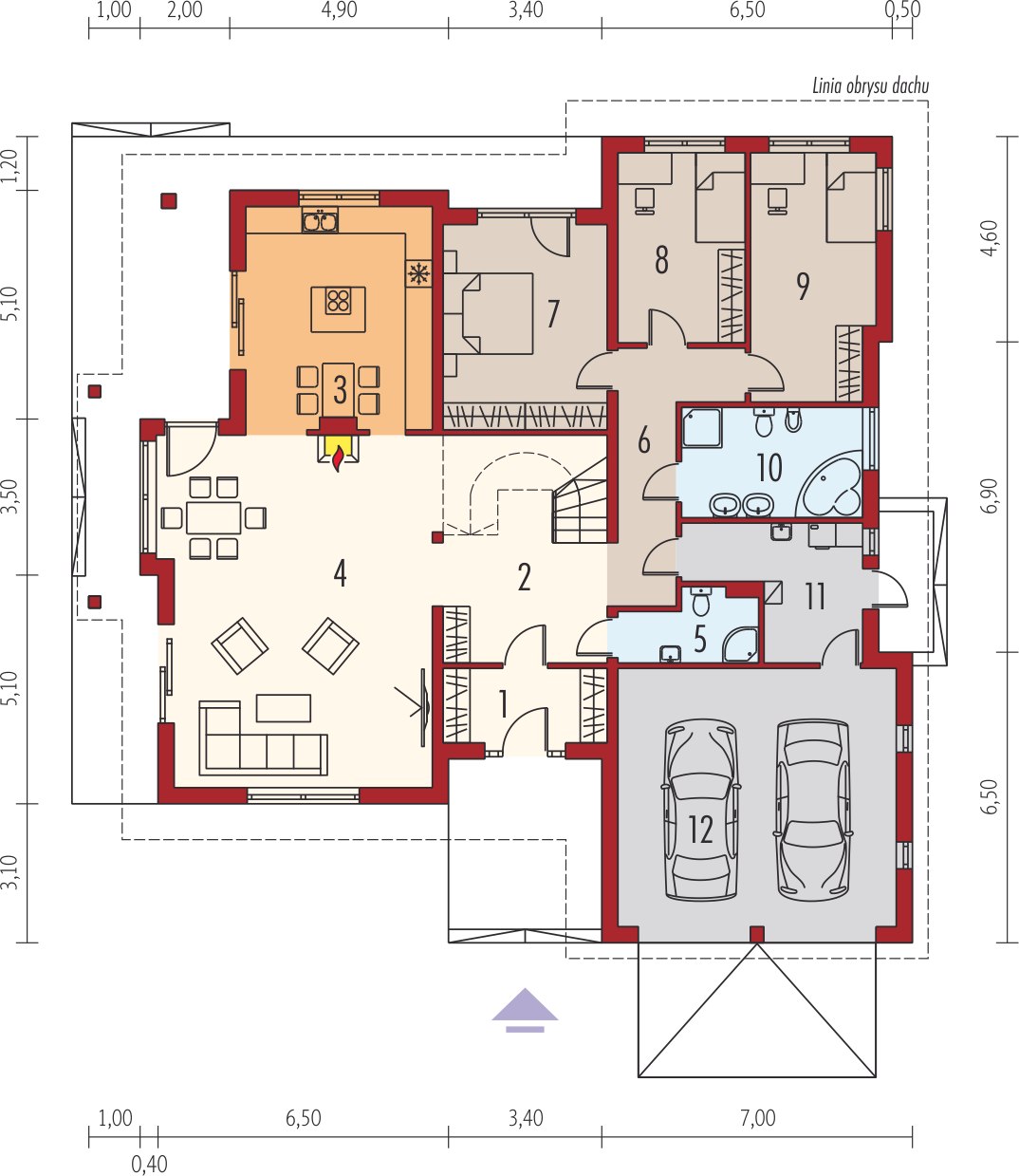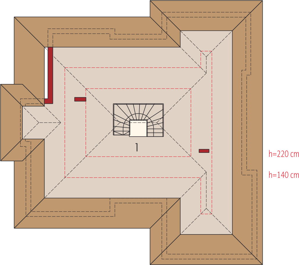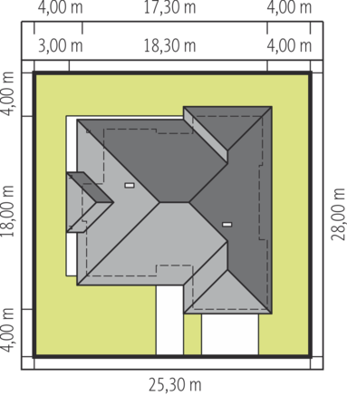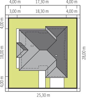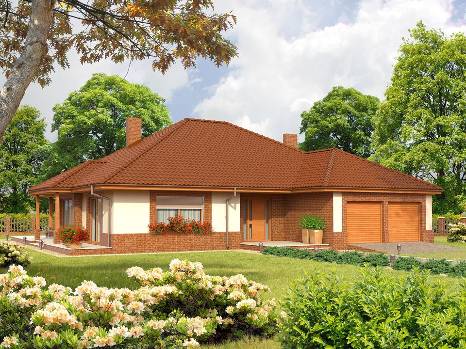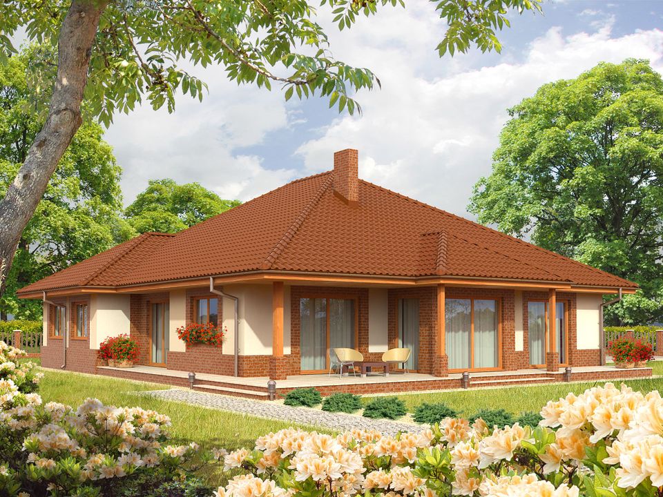 Graficzne opracowanie rzutów poglądowych widocznych na karcie projektu zostało wykonane przez Extradom.pl. Prezentowane przez Extradom.pl wizualizacje wykonane zostały przez autora projektu i należy poczytywać je jedynie za przykład i propozycję wykończenia, wizję architektoniczną autora projektu. Ostateczne wykończenie budynku może nastąpić na wiele sposobów. Szczegółowe rozwiązania zastosowane w oferowanej dokumentacji - w tym również ilość, lokalizacje i wygląd okien, drzwi, kominów - mogą w niewielkim stopniu różnić się od prezentowanej wizualizacji budynku.