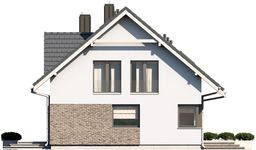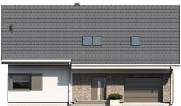 Graficzne opracowanie rzutów poglądowych widocznych na karcie projektu zostało wykonane przez Extradom.pl. Prezentowane przez Extradom.pl wizualizacje wykonane zostały przez autora projektu i należy poczytywać je jedynie za przykład i propozycję wykończenia, wizję architektoniczną autora projektu. Ostateczne wykończenie budynku może nastąpić na wiele sposobów. Szczegółowe rozwiązania zastosowane w oferowanej dokumentacji - w tym również ilość, lokalizacje i wygląd okien, drzwi, kominów - mogą w niewielkim stopniu różnić się od prezentowanej wizualizacji budynku.