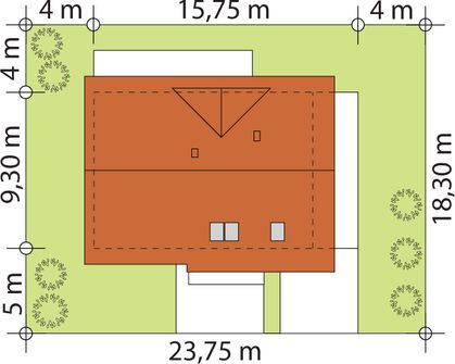 Dach: dachówka lub blachodachówka. Elewacje: tynk, płytka elewacyjna. Strop: żelbetowy. Ściany wewnętrzne: murowane. Ściany zewnętrzne: dwuwarstwowe, pustak ceramiczny, docieplony styropianem. Ogrzewanie: kocioł gazowy lub kocioł na paliwo stałe.