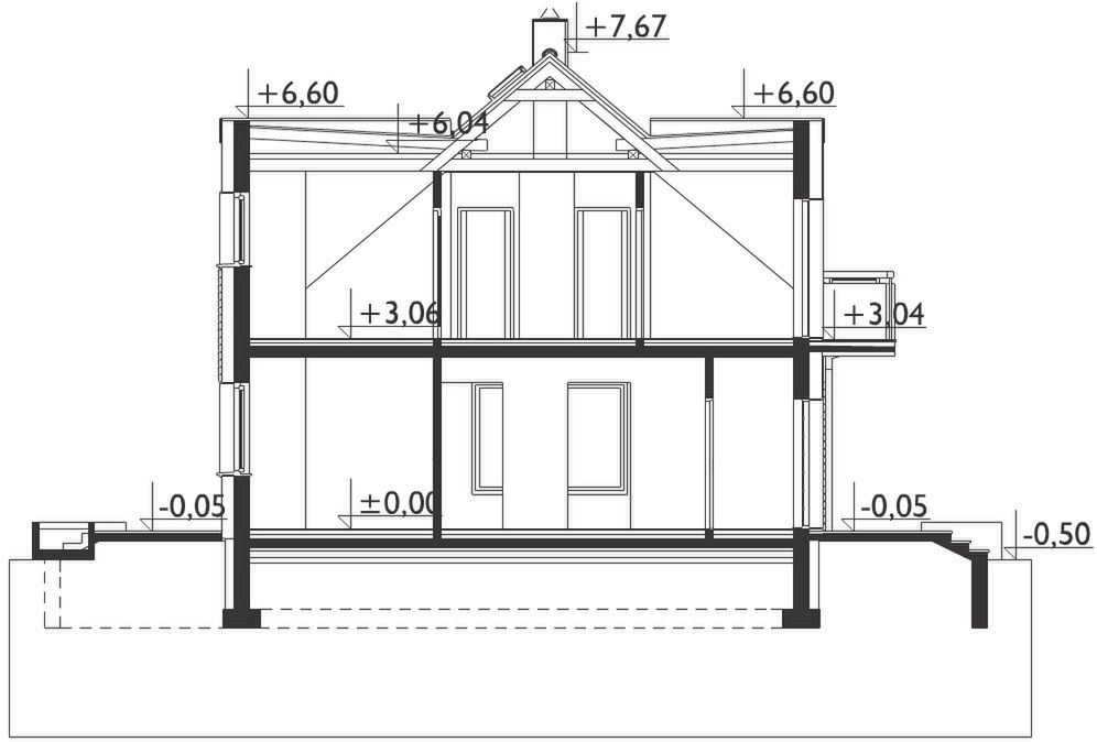 Wersja technologiczna: murowana - ceramika. Strop: żelbetowy monolityczny. Typ schodów: płytowe żelbetowe. Konstrukcja dachu: drewniana krokwiowo-jętkowa. Typ ogrzewania: Kocioł na gaz. Dostępna wersja z pompą ciepła: Tak. Wentylacja: mechaniczna. Ściany zewnętrzne: 25 cm ceramika. Ściany wewnętrzne: 25 cm ceramika. Ściany wewnętrzne działowe: 11 cm ceramika. Wentylacja: mechaniczna.