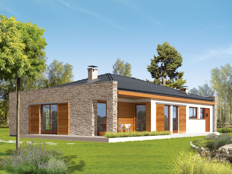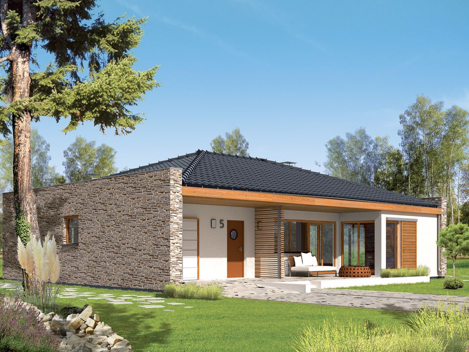 Ściany zewnętrzne: murowane,. Strop: gęstożebrowy. Dach: konstrukcja drewniana, dachówka ceramiczna lub cementowa. Ogrzewanie: kocioł gazowy, rozprowadzenie ciepła: grzejniki. Wentylacja: grawitacyjna. Elewacje: tynk mineralny oraz okładzina kamienna i drewniana. Stolarka: drewniana lub PCV, rolety zewnętrzne naokienne.