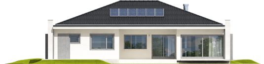 Graficzne opracowanie rzutów poglądowych widocznych na karcie projektu zostało wykonane przez Extradom.pl. Prezentowane przez Extradom.pl wizualizacje wykonane zostały przez autora projektu i należy poczytywać je jedynie za przykład i propozycję wykończenia, wizję architektoniczną autora projektu. Ostateczne wykończenie budynku może nastąpić na wiele sposobów. Szczegółowe rozwiązania zastosowane w oferowanej dokumentacji - w tym również ilość, lokalizacje i wygląd okien, drzwi, kominów - mogą w niewielkim stopniu różnić się od prezentowanej wizualizacji budynku.