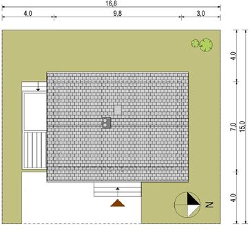 Graficzne opracowanie rzutów poglądowych widocznych na karcie projektu zostało wykonane przez Extradom.pl. Prezentowane przez Extradom.pl wizualizacje wykonane zostały przez autora projektu i należy poczytywać je jedynie za przykład i propozycję wykończenia, wizję architektoniczną autora projektu. Ostateczne wykończenie budynku może nastąpić na wiele sposobów. Szczegółowe rozwiązania zastosowane w oferowanej dokumentacji - w tym również ilość, lokalizacje i wygląd okien, drzwi, kominów - mogą w niewielkim stopniu różnić się od prezentowanej wizualizacji budynku.