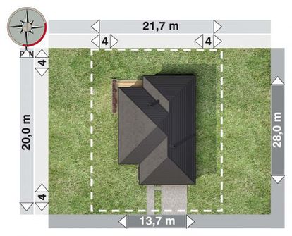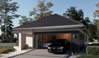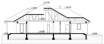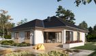 Graficzne opracowanie rzutów poglądowych widocznych na karcie projektu zostało wykonane przez Extradom.pl. Prezentowane przez Extradom.pl wizualizacje wykonane zostały przez autora projektu i należy poczytywać je jedynie za przykład i propozycję wykończenia, wizję architektoniczną autora projektu. Ostateczne wykończenie budynku może nastąpić na wiele sposobów. Szczegółowe rozwiązania zastosowane w oferowanej dokumentacji - w tym również ilość, lokalizacje i wygląd okien, drzwi, kominów - mogą w niewielkim stopniu różnić się od prezentowanej wizualizacji budynku.